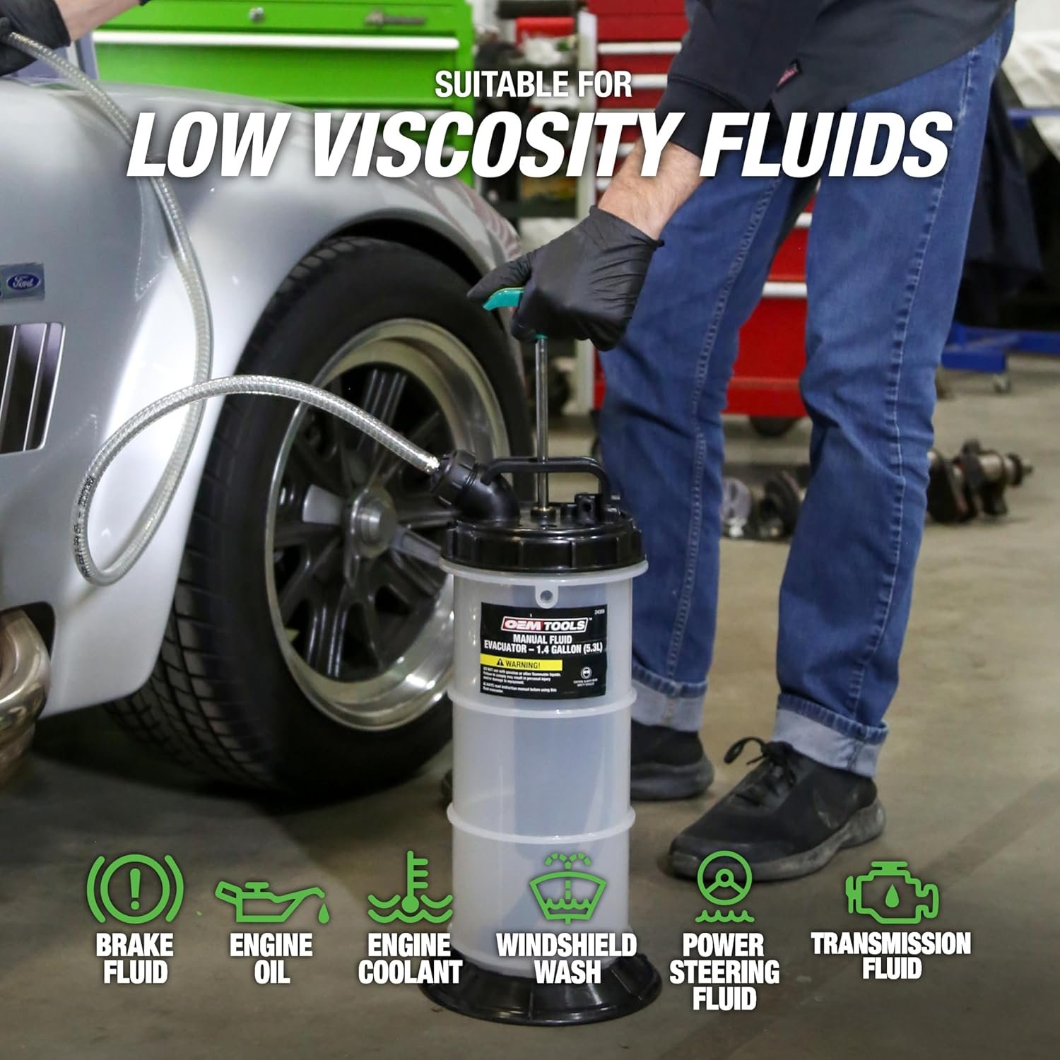 OEMTOOLS 24389 Manual Fluid Extractor, 5.3L Oil Extractor, Automotive Tool for Engine Oil, Transmission Fluid, and Coolant