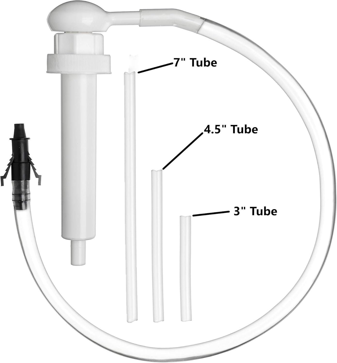 🚤24 inch FLEXIBLE CLEAR FILL TUBE allows you to direct fluid into tight and awkward places. 3 different length suction tubes for various bottle heights