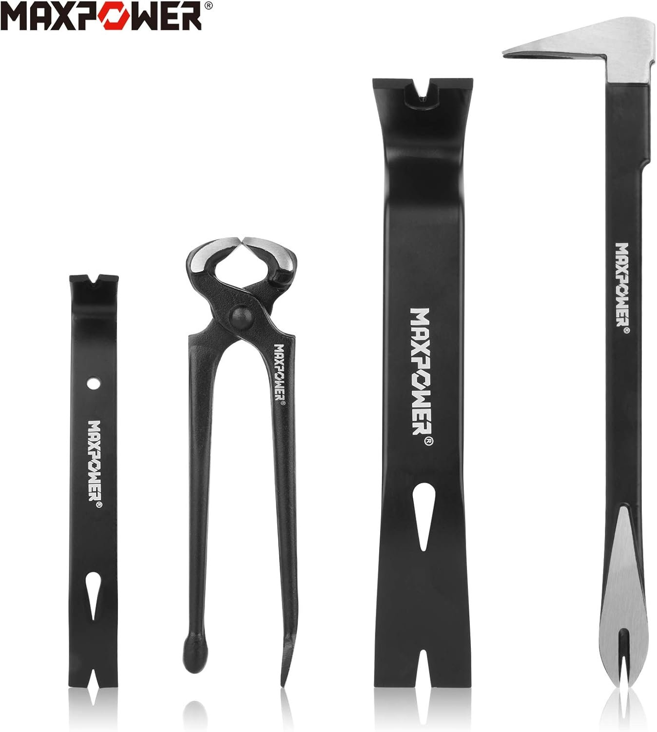 MAXPOWER 4-Pieces Pry Bar Set, 12-inch Utility Claw Pry Bar, 8-inch Nail Puller, 10-inch and 7-inch Flat Pry Bar Crowbar Claw