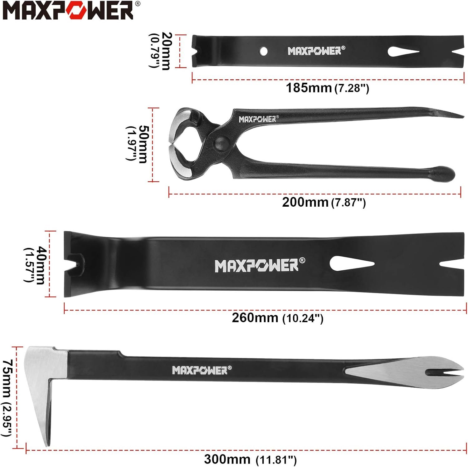 Be the first to review “MAXPOWER 4-Pieces Pry Bar Set, 12-inch Utility Claw Pry Bar, 8-inch Nail Puller, 10-inch and 7-inch Flat Pry Bar Crowbar Claw”
