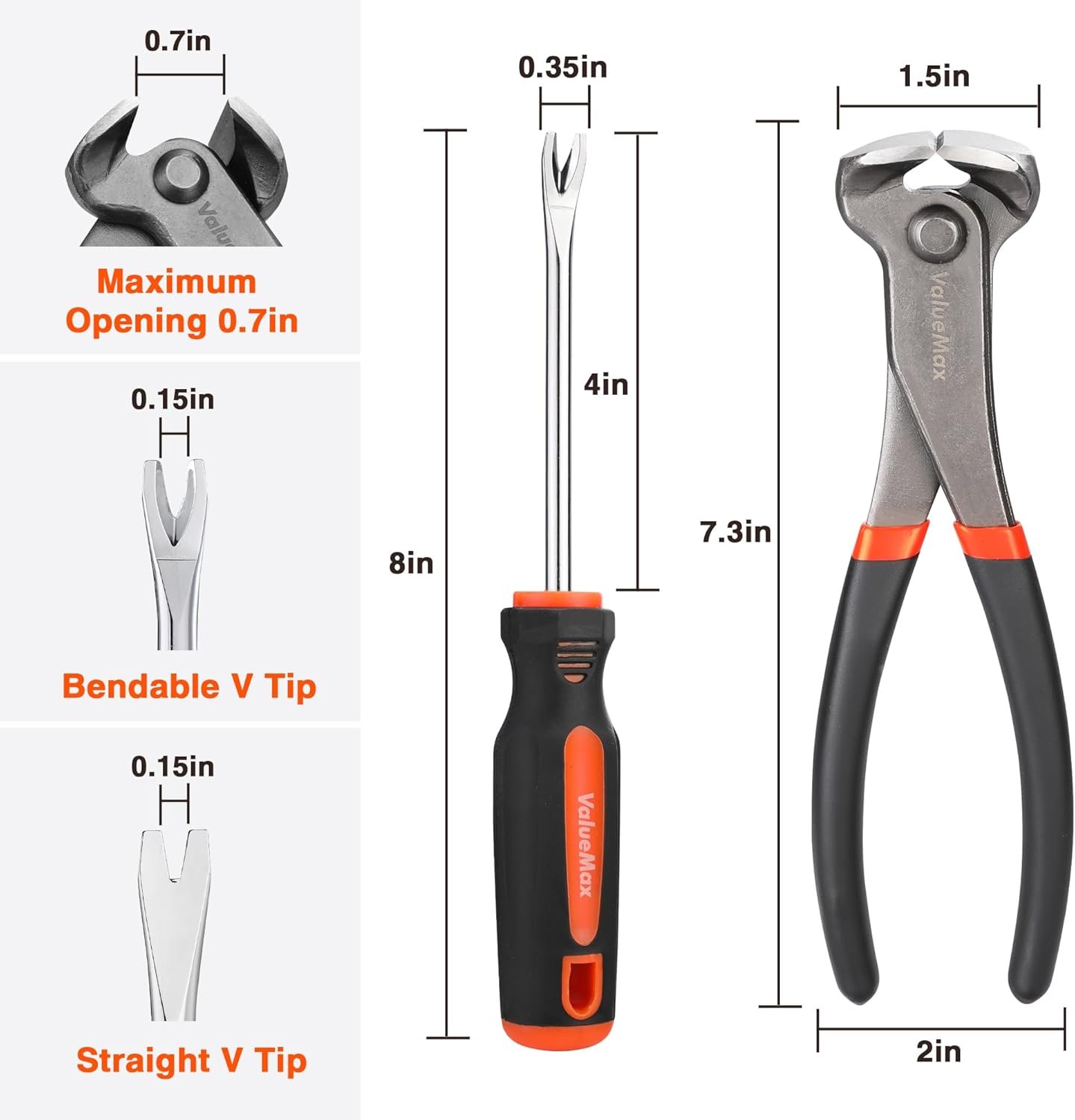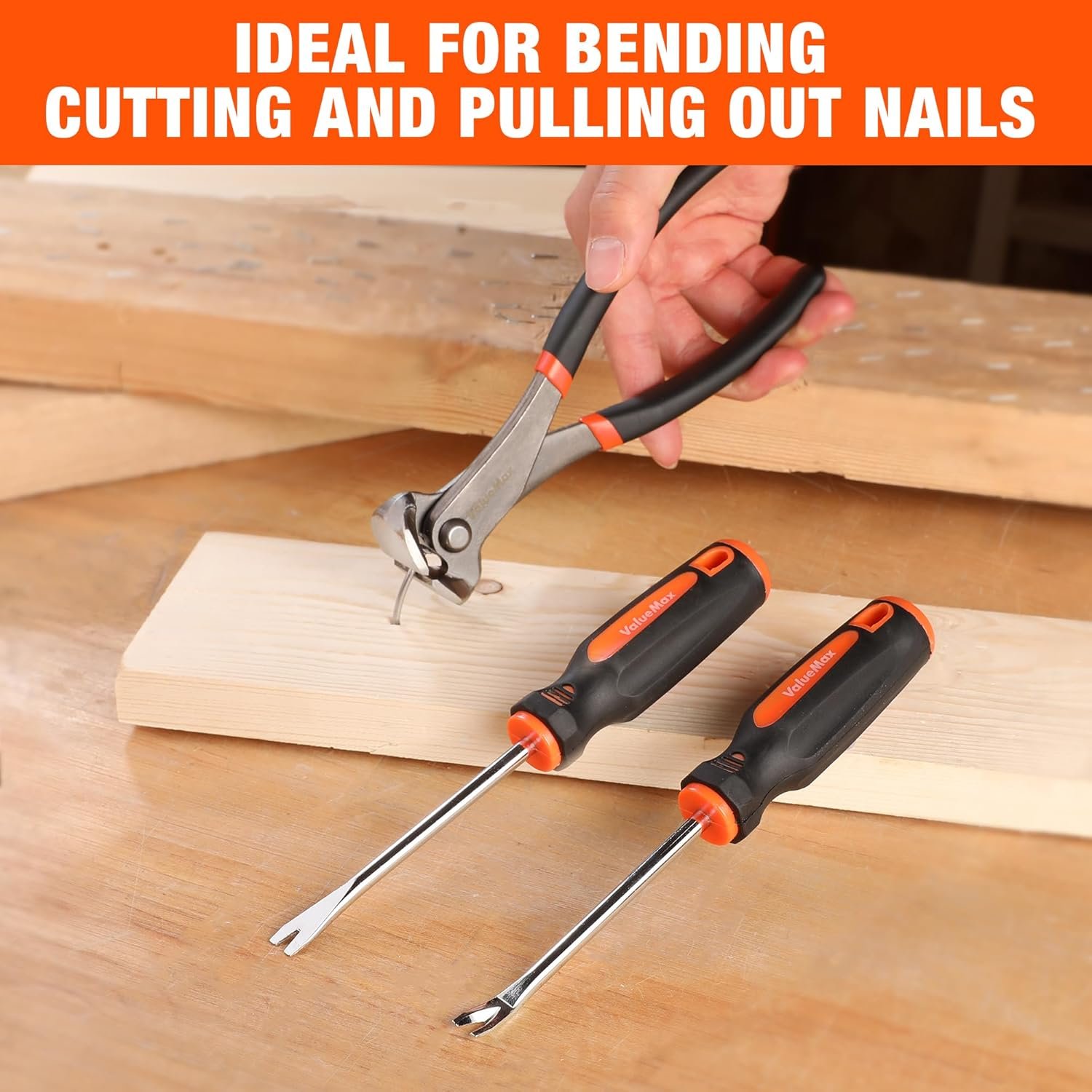 VALUEMAX 3Pcs Nail Puller and Staple Remover Tool, Include 7″ End Cutting Pliers, 8″ Bendable and Straight V Tip Staple Puller, Upholstery Tools for Cutting Wires, Removing Nails and Staples