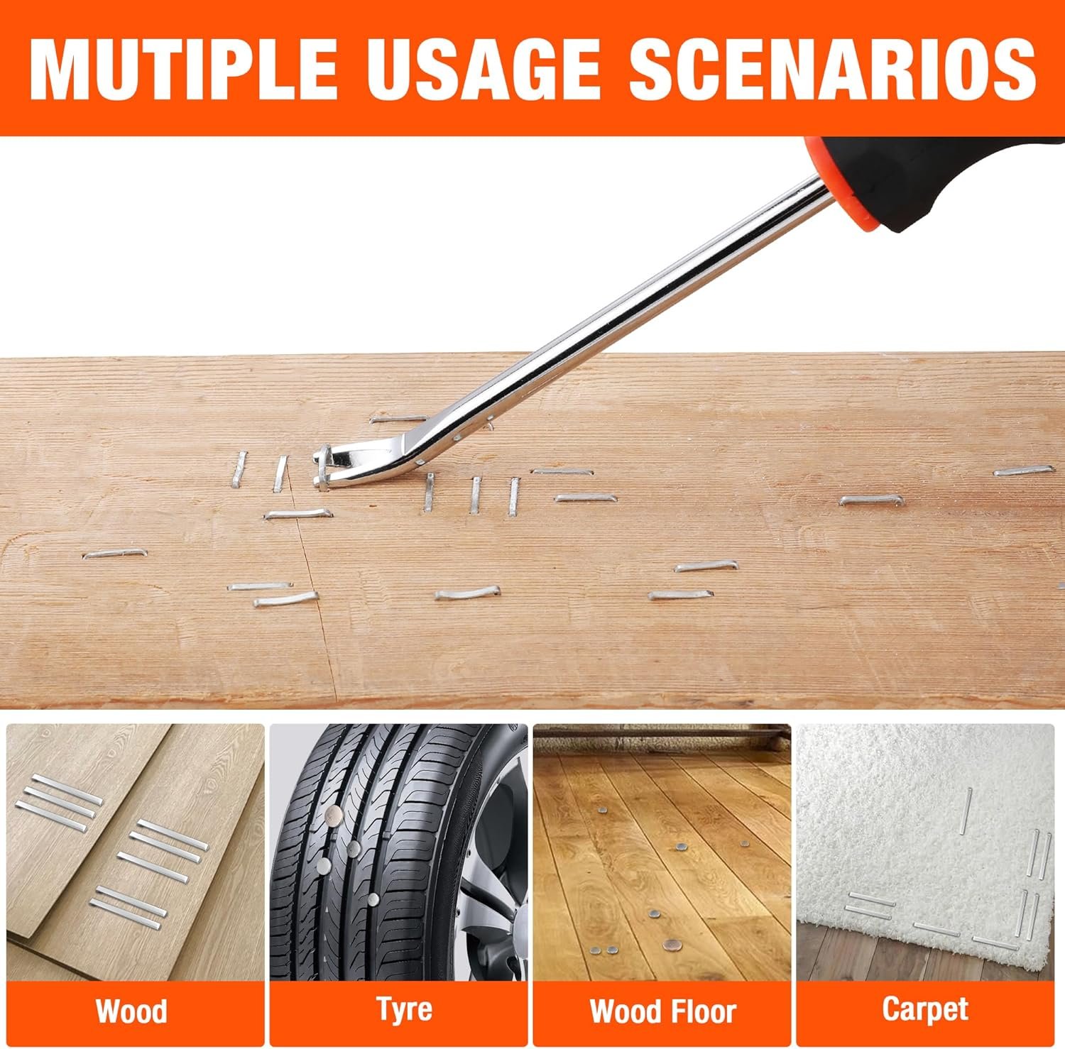 Wide Application: This tool set can be used to pull nails, cut wires, cut steel wires, and can easily remove staples from boards, tires, furniture, carpets, picture frames, cardboard boxes. Warm Tips: This tack remover tool can not be used to pry too tight or too big nails, so as not to damage the tool