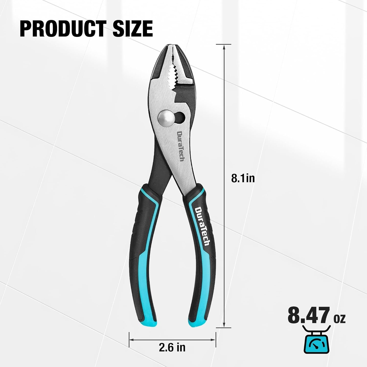 DURATECH 8 Inch Slip Joint Pliers, Pliers Tool with Comfortable TPR Handle, High Carbon Steel, Strong Sharp Teeth, Pliers for Tightening, Loosening and Gripping Nuts and Bolts