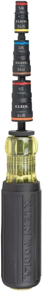 Klein Tools 32910 Impact Driver, 7-in-1 SAE Impact Socket Set with Handle, Flip Socket with 1/4, 5/16, 3/8, 7/16, 1/2 and 9/16-Inch Nut Driver Sizes and 1/4-Inch Bit Holder