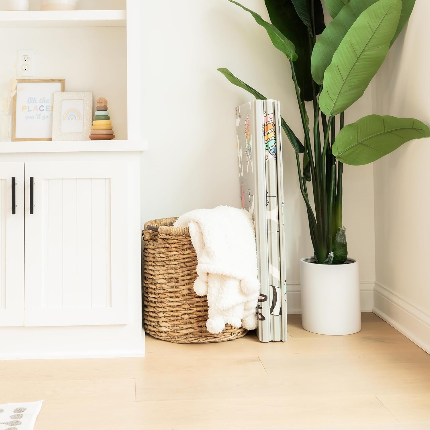 The Regalo My play mat is a lightweight, foldable, play mat ideal for home, when traveling, or time spent outdoors. Plus, it only takes a few seconds to set up. This attractive play mat is reversible with fun Alphabet characters on one side and a gray. Chevron pattern on the opposite side. It measures 77″ Wide and 71″ And is made with soft foam that is gentle for little hands and feet. It can easily be wiped down with a wet cloth and is ideal for children from 0+ months. Regalo My play mat dimensions: 77″ W x 71″ H ages: 0+ months sets up in seconds compactly folds easy, reversible mat lightweight with soft foam easily wipes down with wet cloth for indoor and outdoor use. Can be used with our my play portable play yard or super wide play yards model: 4100.