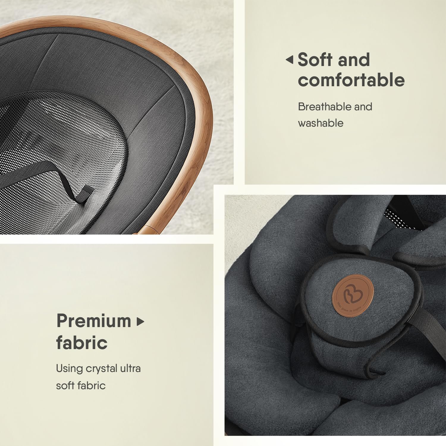 [Combines Warmth and Breathability]: The baby swing seat cushion is made of high-quality ultra soft fabric, which is easy to disassemble and clean. The soft humanoid plush side keeps babies comfortable in winter, while the unique breathable mesh base after disassembly can prevent sweating in summer