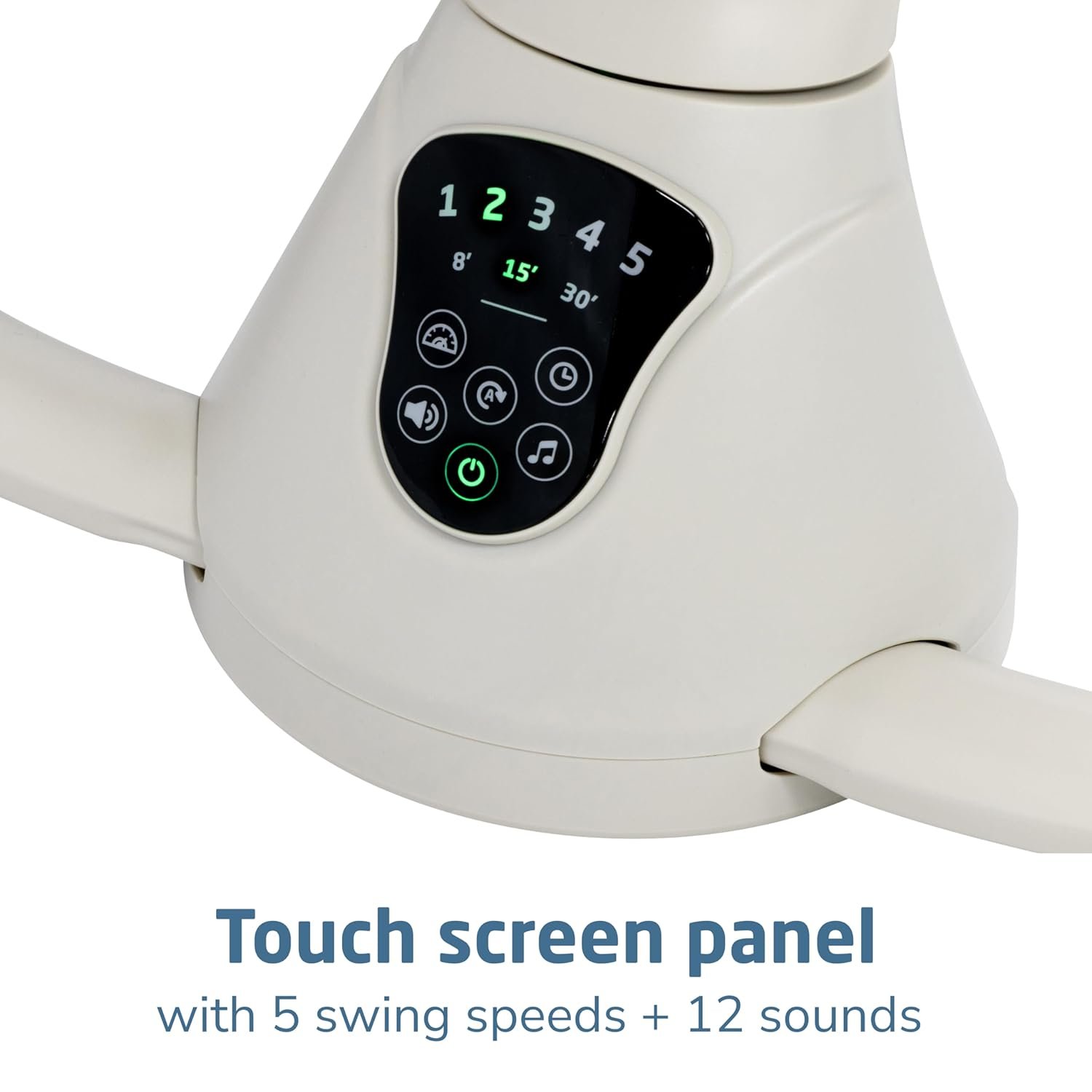 SET THE MOOD WITH THE TIP OF YOUR FINGER: Easily customize the compact baby swing’s settings with the smart built-in touch screen panel, selecting from 5 swing speeds and 12 melodies and nature sounds.