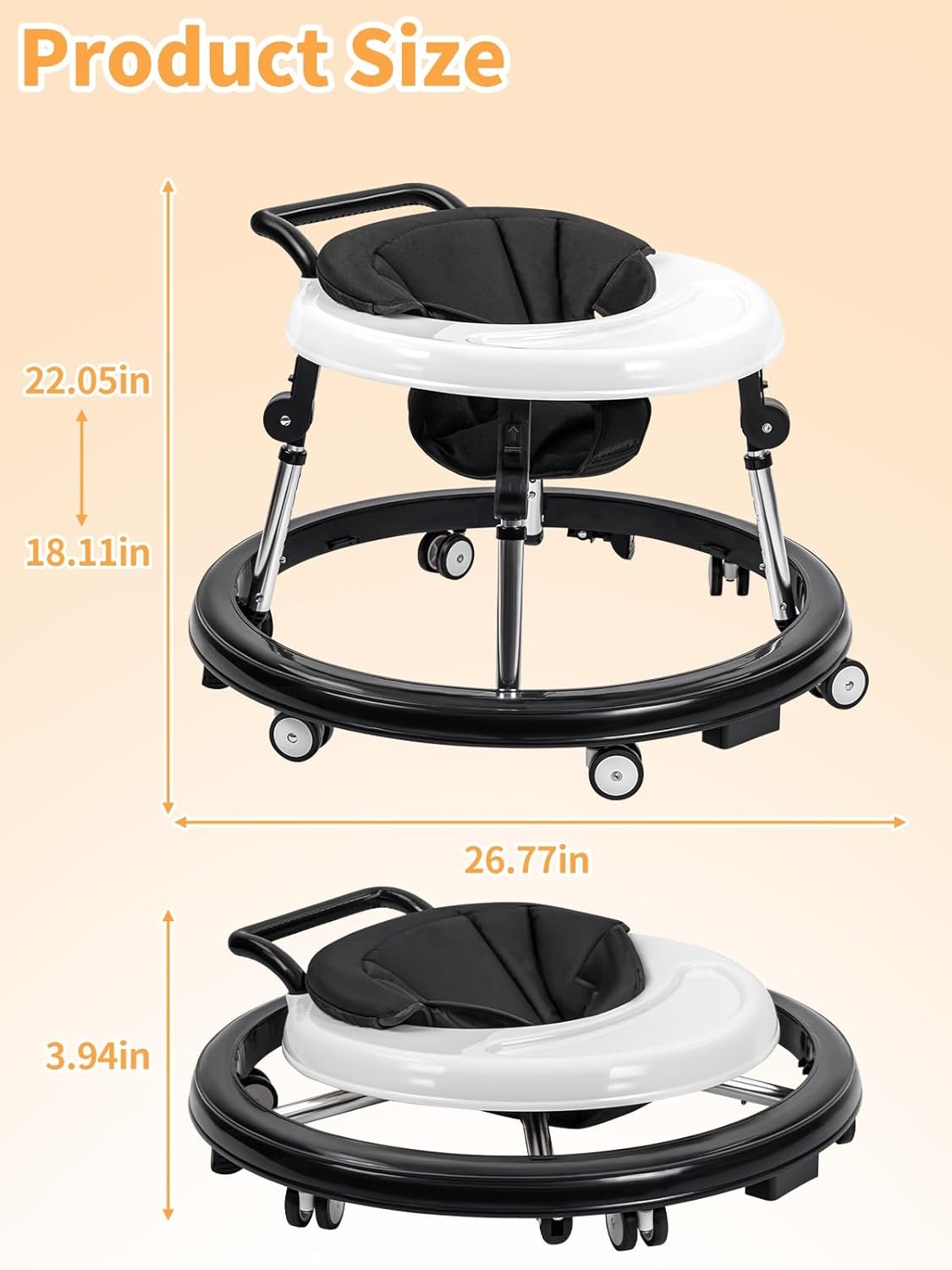 【Easy Fold Design】The baby walker has foldable support arm, which can be quickly folded and unfolded, and it is very thin after folding, which is convenient for carrying and storage