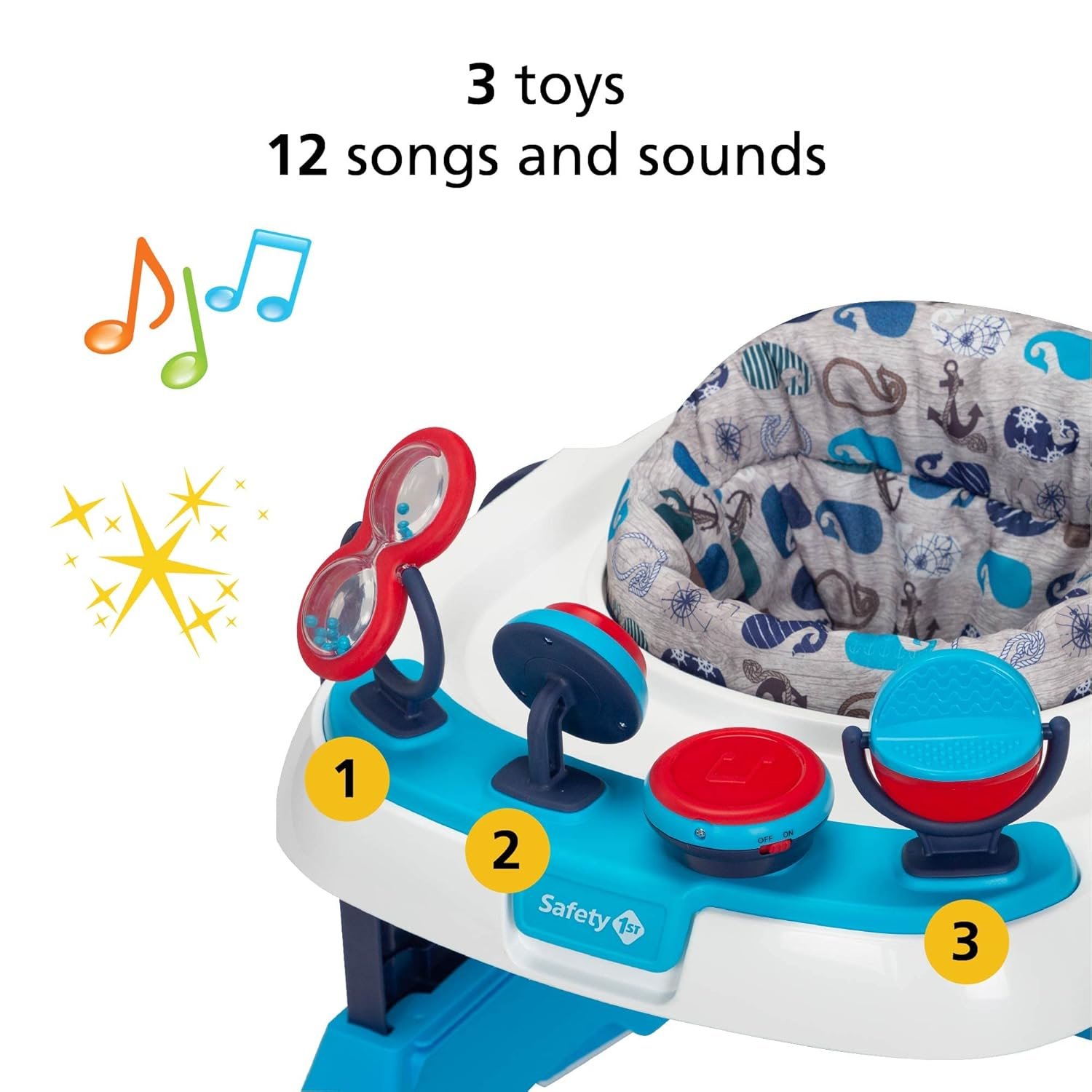 Safety 1st Ready, Set, Walk Dx Developmental Baby Walker with Wheels, Baby Toys, Nantucket