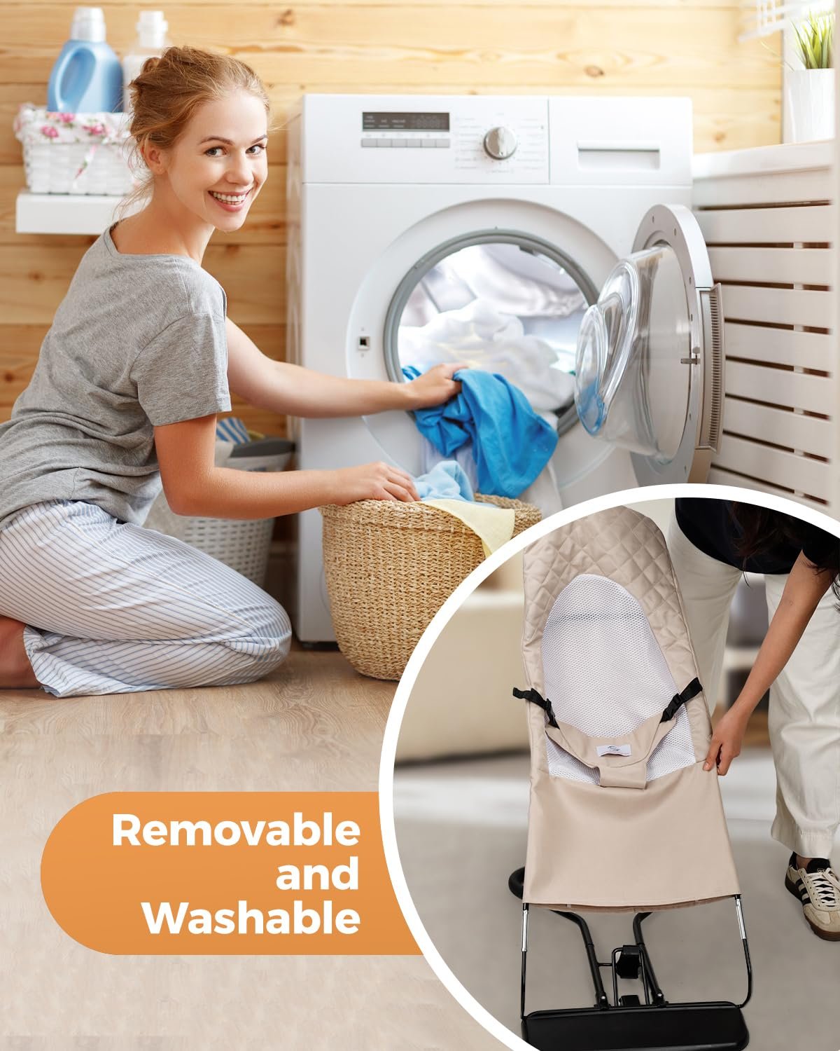 Bouncer Seat for Babies 0-12 Months, Baby Bouncer forBreathable and Comfortable Cushion, Three HeightAdjustments, Baby Rocker Portable Folding andDetachable, Ergonomic Baby Seat