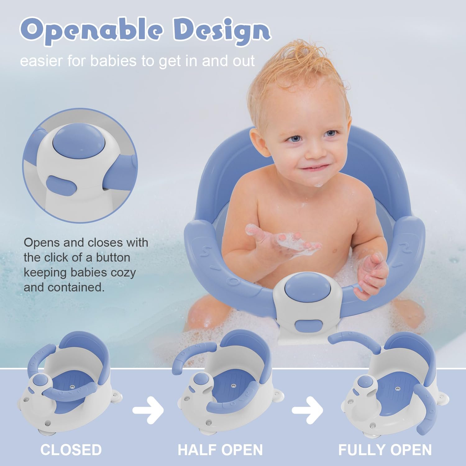 👶【Baby’s Bathing Helper】 Our bath seat for babies 6 months & up can let your child enjoy a really fun bathing experience. Free up mom’s hands and enjoy a relaxing parent-child bath time. Say goodbye to frustration, sore hands, and wasted energy, this is a practical helper for every parent!