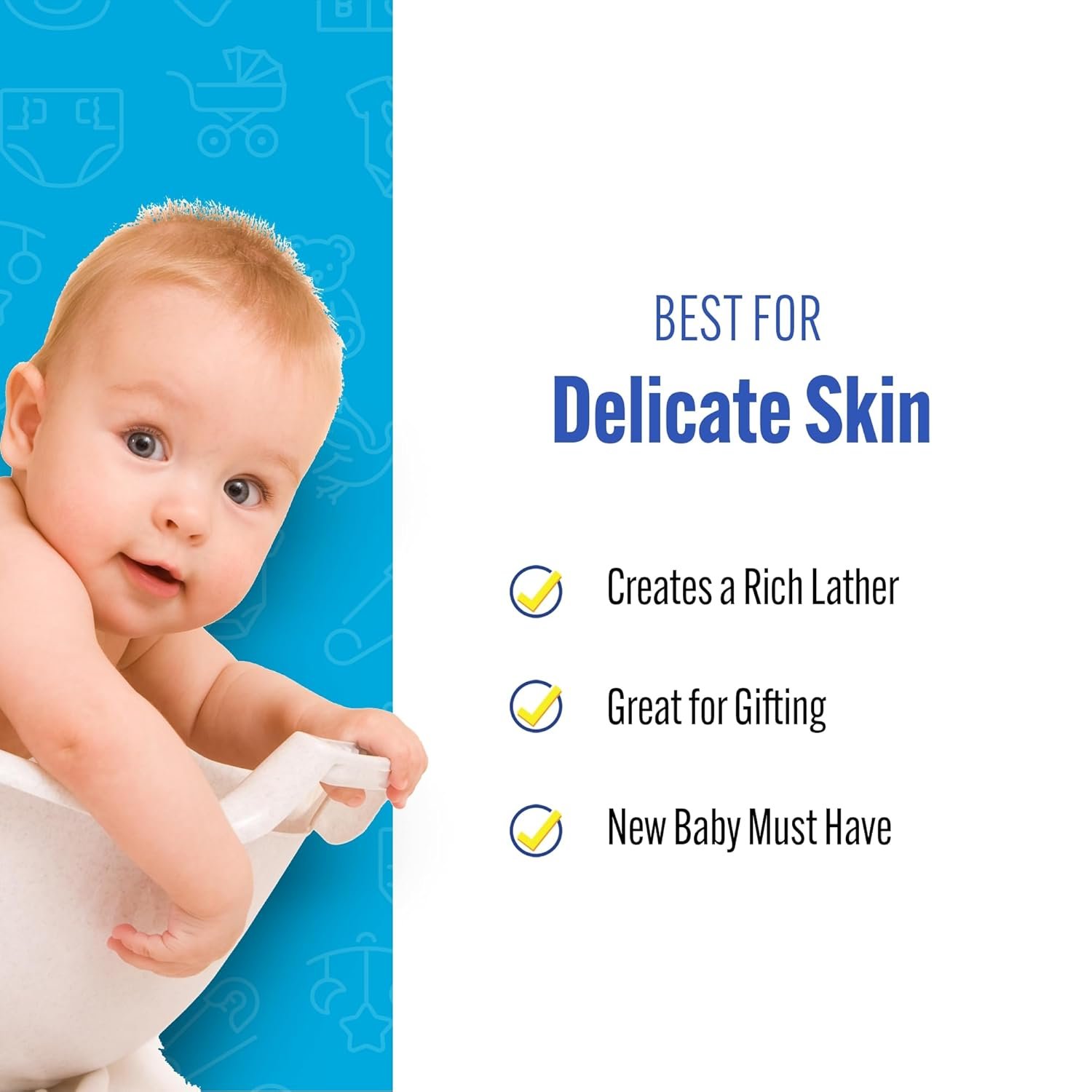 HOW TO – Fully wet the sponge and let it soften before applying your preferred baby wash or soap to create a luxurious lather, gently wash your baby’s skin