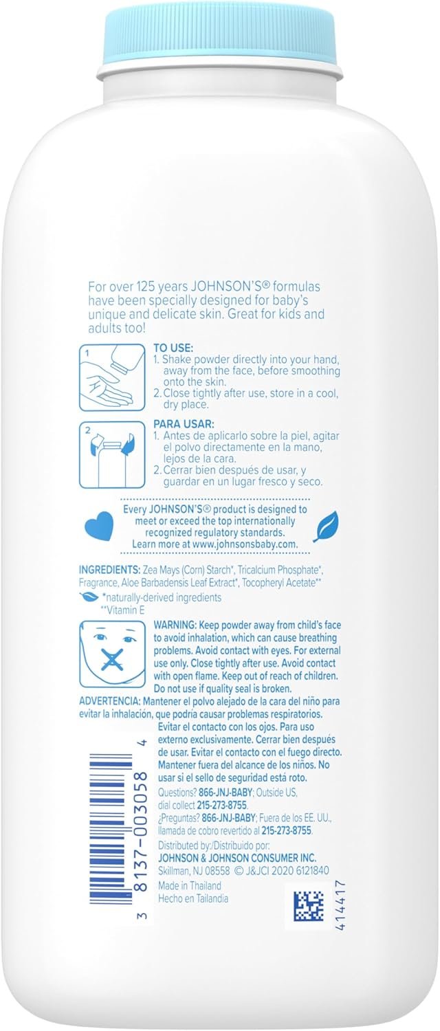 For over 125 years, Johnson’s formulas have been specifically designed for baby’s delicate skin. To use, shake baby powder directly into your hand, away from the face, before smoothing onto the skin