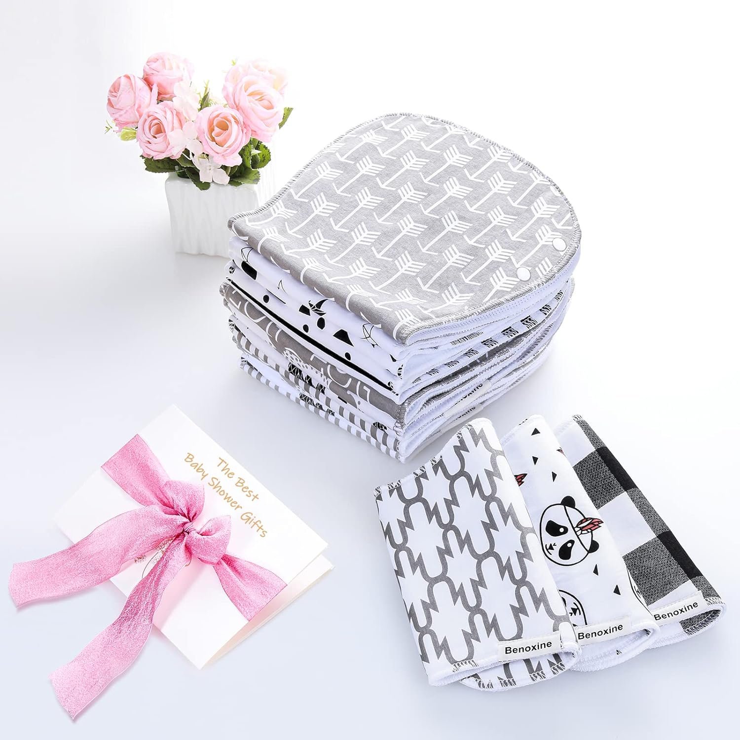 【12-PACK IDEAL SIZE AND UNIQUE DESIGN BEST BABY SHOWER GIFT】Topping the baby registry, this is a must-have item for parents of newborns, and the more burp cloths the better! These burp cloths are for boys and girls, made of safe materials, odorless, hypoallergenic, easy to clean and very durable. They are super soft, hardly shrink after washing and hold their shape very well