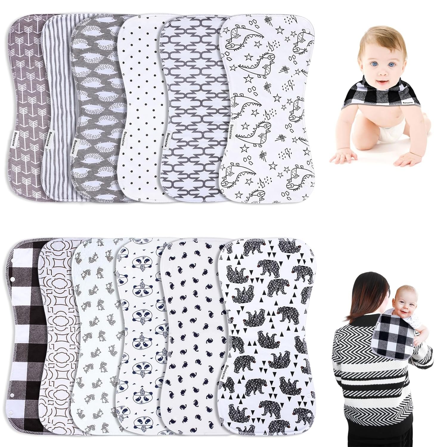 Baby Burp Cloths & Baby Bibs 2-in-1 Design Large Size 3 Layers Thicken 100% Cotton Super Absorbent and Soft Baby Spit Up Burping Rags Baby Burp Cloth Set for Boys and Girls 12 Pack