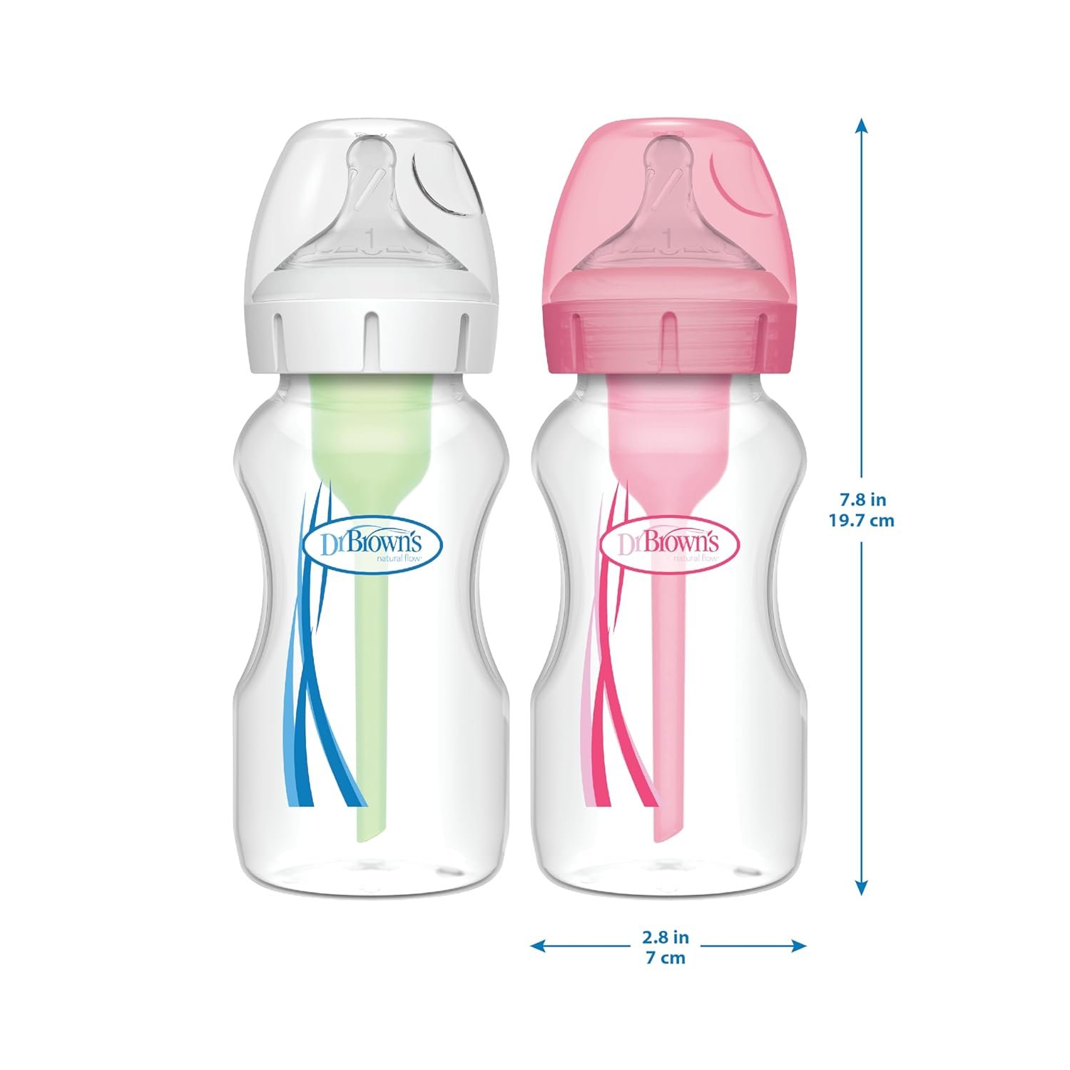 Your options have never been better with Dr. Brown’s Natural Flow® Anti-Colic Options+™ Wide-Neck Baby Bottle. The anti-colic internal vent system is clinically proven to reduce colic. Dr. Brown’s® bottles provide a more comfortable feeding experience for baby by decreasing spit-up, burping and gas. This vacuum-free feeding is closest to breastfeeding and Dr. Brown’s® silicone nipples provide a consistent flow so baby can feed at their own pace. The breast-like nipple shape encourages a proper latch for a more natural bottle feeding experience and eases the transition from breast to bottle and back again. Dr. Brown’s vent system is proven to help preserve bottle milk nutrients and aids in digestion for a better night’s sleep. The silicone nipple, together with the internal vent system, offer a reliable and trusted bottle feeding experience that makes Dr. Brown’s the #1 Pediatrician Recommended Baby Bottle in the U.S.* Made to grow with baby, our bottle is designed to nourish through all of baby’s feeding stages and is recyclable. Safe for use in dishwasher (top rack only), electric and microwave sterilizers or boiling water. BPA Free.