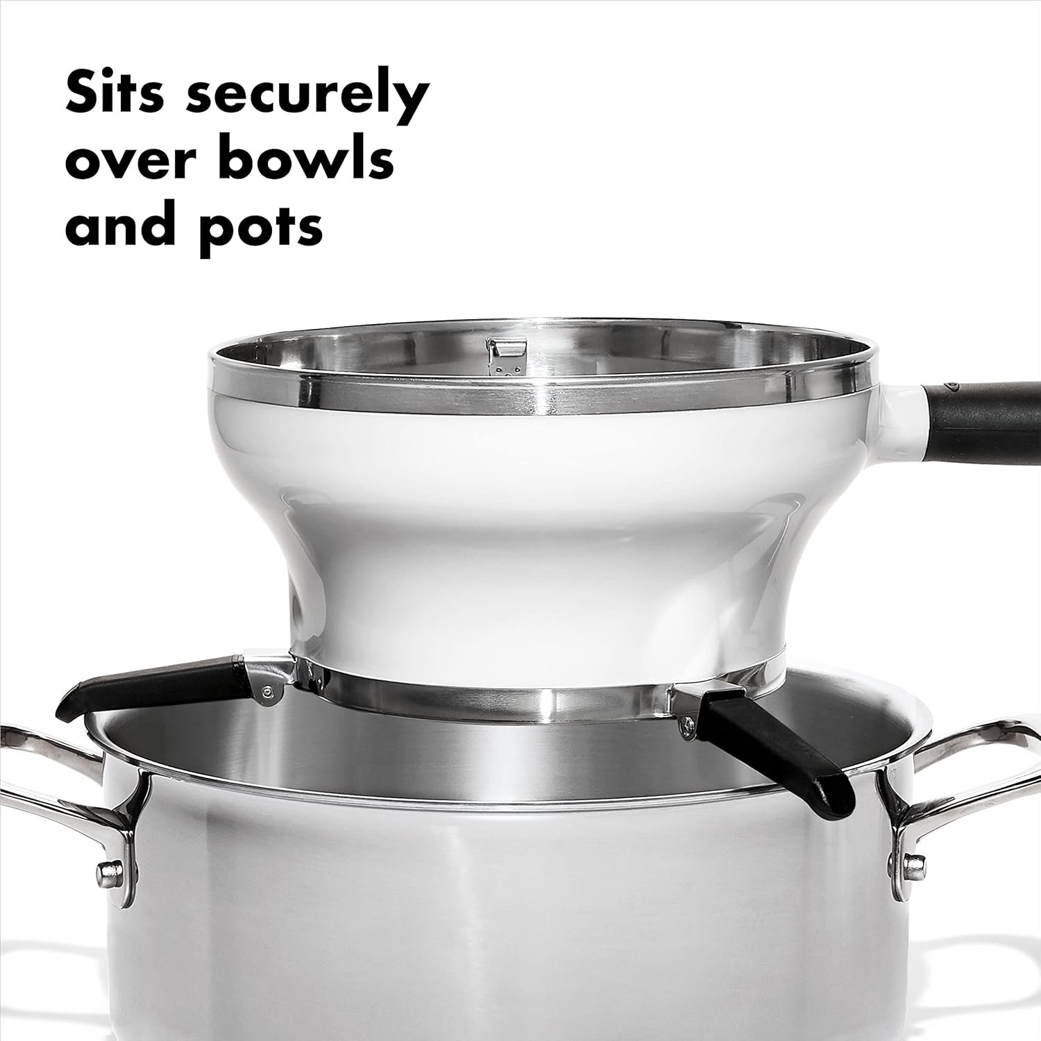 3 non-slip legs secure placement over bowls and pots up to 11″ in diameter, keeping Mill from falling into food