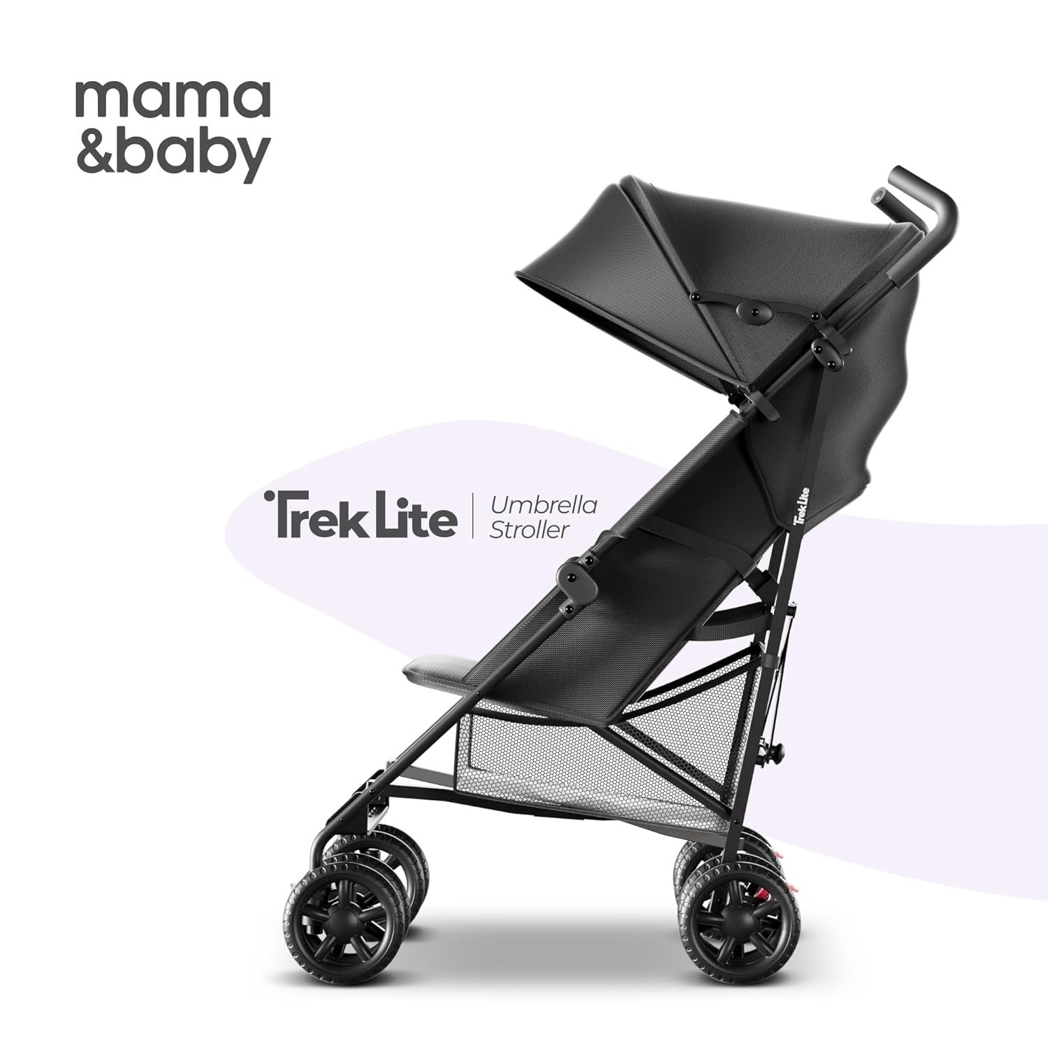 MAMA & BABY Trek Lite Umbrella Stroller – Compact Fold, Multi-Position Recline, Travel Stroller with Carry Strap, Large Storage and Cup Holder