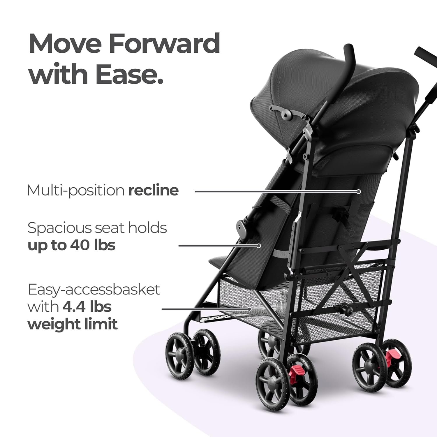 Room to Roam: Discover the convenience of accessible underseat storage basket, perfect for storing all your essentials for a day out. Plus, this lightweight stroller comes with a handy cup holder, ideal for keeping a bottle of water or sippy cup within easy reach