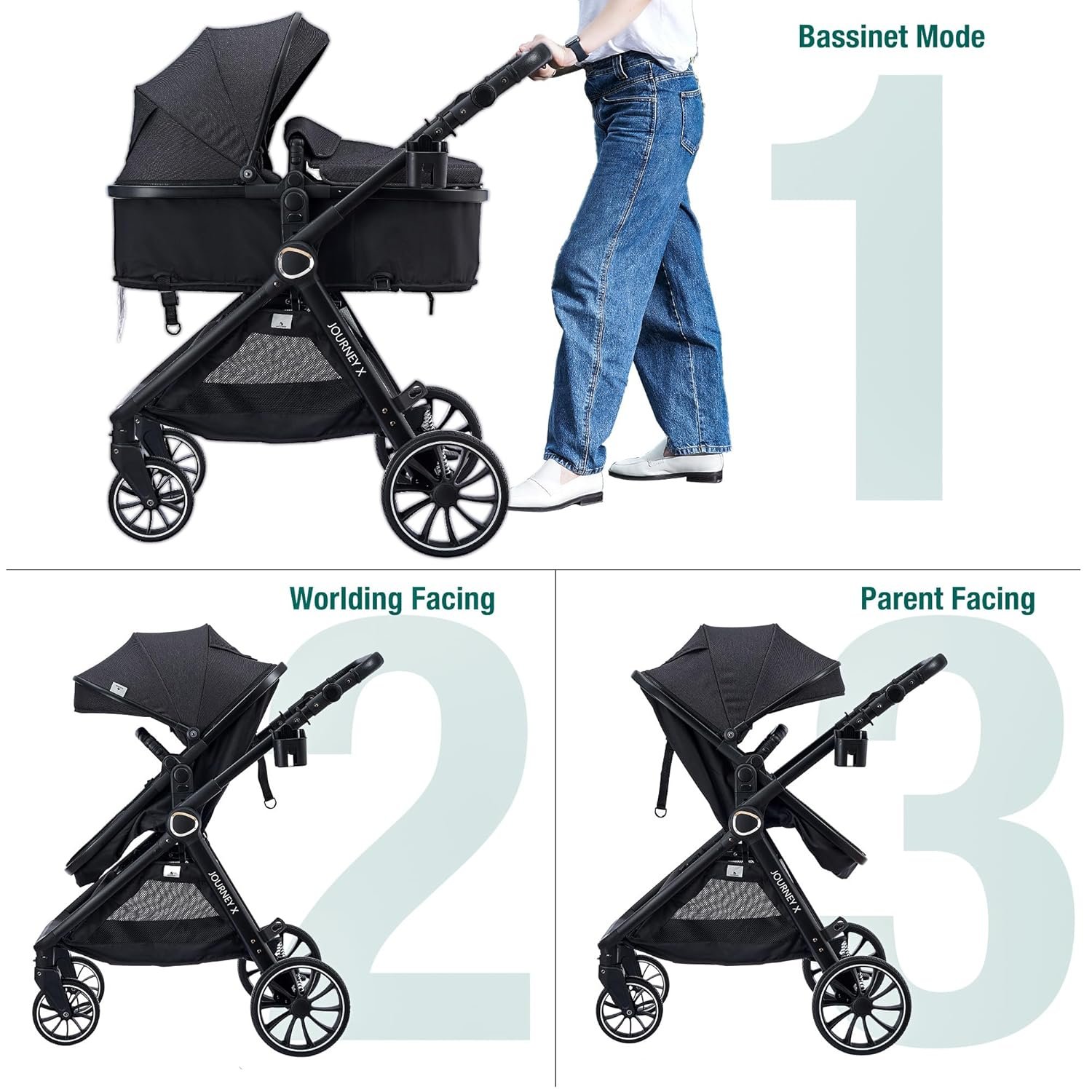 ❤ 2 in 1 Convertible Stroller: This baby stroller is not only a standard stroller, but also a moving baby bassinet.Backrest and footrest adjusted easily converts from seat to a bassinet offering your newborn a comfortable reclining or sleeping position. Plus, you can detach and reverse the bassinet to let your toddler face forward or towards you while you stroll.