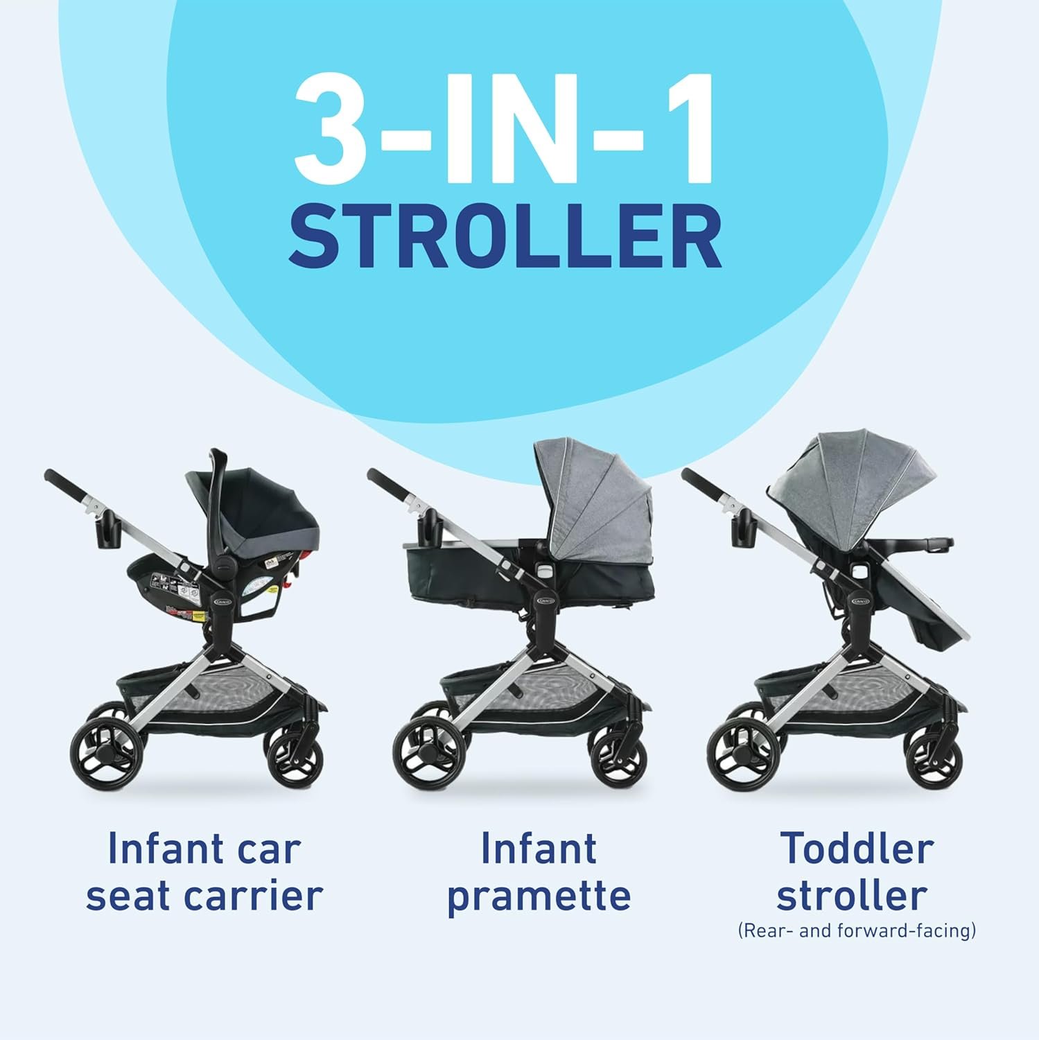 Versatile 3-in-1 Stroller: Transforms from an Infant Car Seat Carrier to Infant Pramette and then to Toddler Stroller