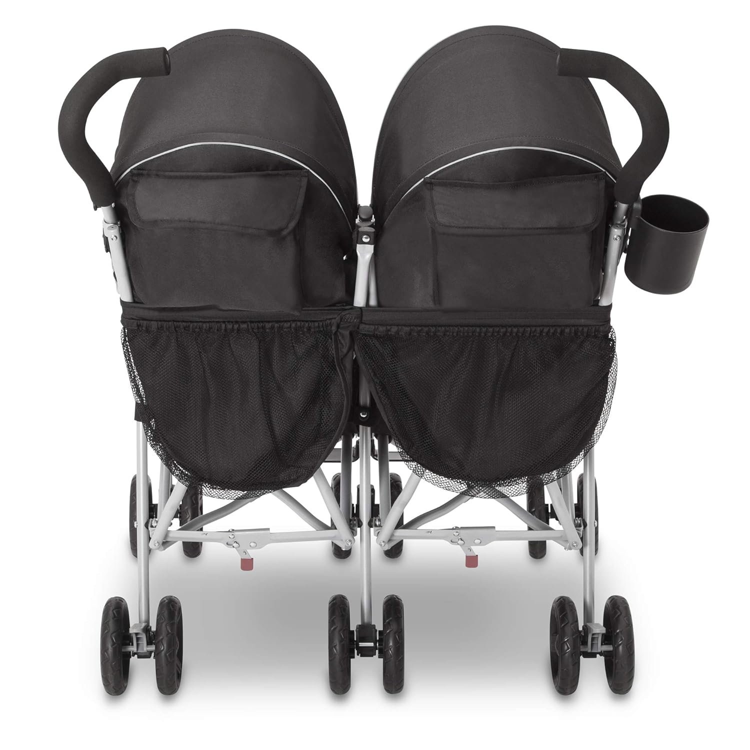 Customers find the stroller easy to fold down and appreciate its compact size, fitting nicely in small trunks and through standard doorways. They praise its lightweight design, maneuverability, and storage capacity with four little pouches and double storage behind each seat. Customers consider it a great buy for the money. The build quality receives mixed feedback, with some customers finding it sturdy while others report issues with the canopy ripping during normal use.