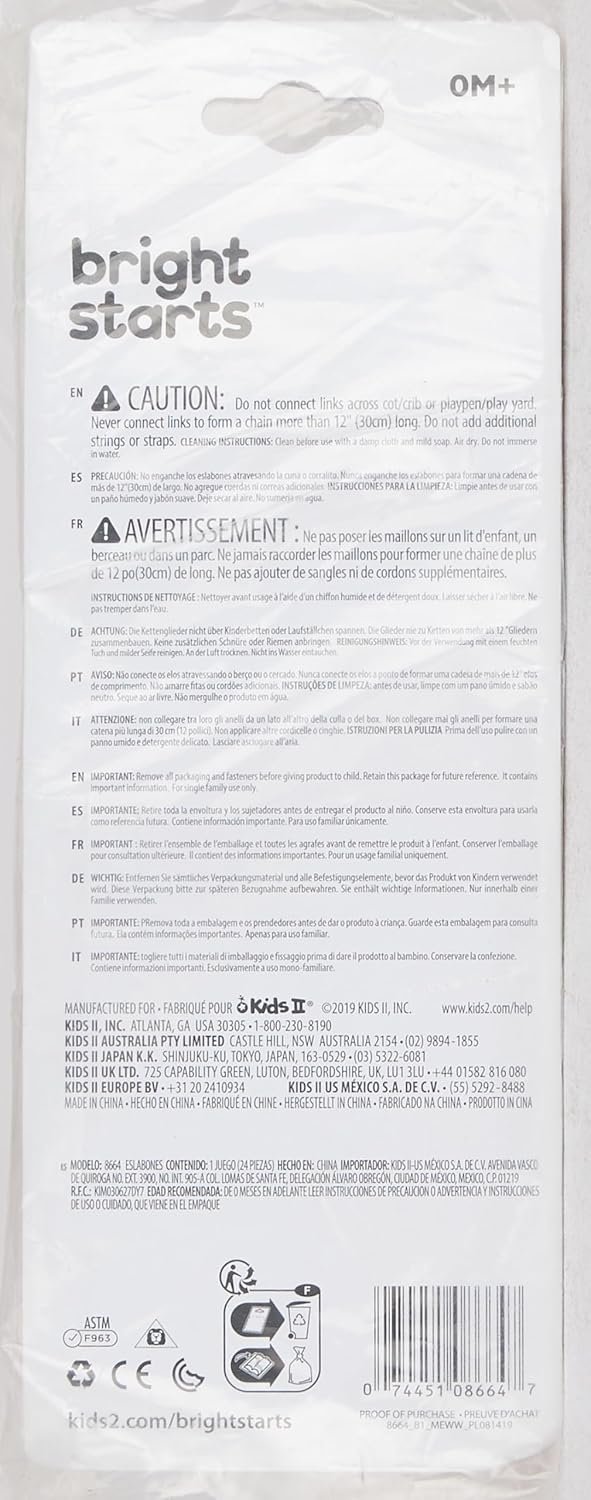 Bright Starts Lots of Links Rings Toys for Stroller or Carrier Seat, BPA-Free, Ages 0 Months Plus, Multicolor, 24 Count