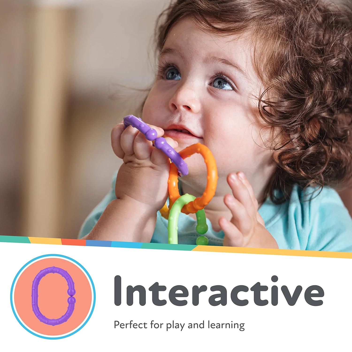 SENSORY TOYS FOR BABIES: Made with engaging primary colors, Linkables help stimulate your child’s senses with built-in texture and variance in tactile sensations