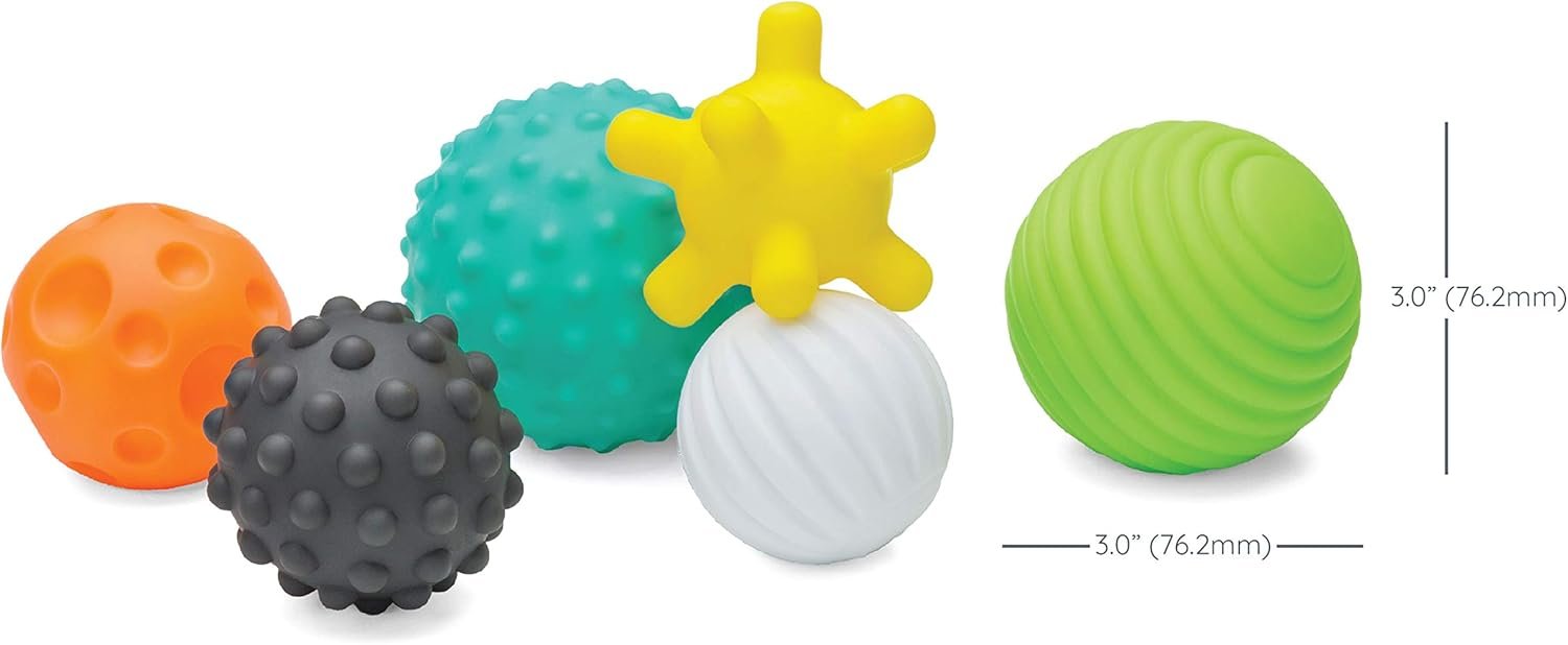 Infantino Textured Multi Ball Set Product Description: Number of Pieces: 6 BPA-Free Helps develop tactile senses Age range: 6+ months Warning: This product is intended to be used with an adult for feeding and/or relaxation under direct adult supervision. Inspect toy before each use and discard if damaged or broken. Please remove all plastic, thread, and/or wire packaging fasteners before giving any toy to a child.