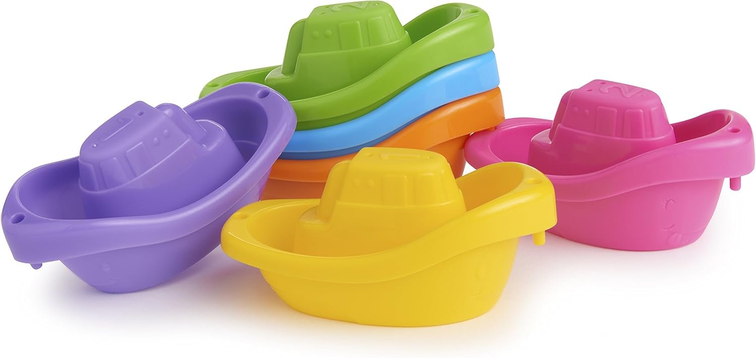 Customers find this bath toy to be a great addition to their bath time arsenal, appreciating its cute colors and ease of cleaning. The toy is well-made, holds up to throwing and chewing, and features stackable boats that can be connected to form a train. While some customers say the boats float well, others report they don’t stay afloat. Customers consider it good value for money.