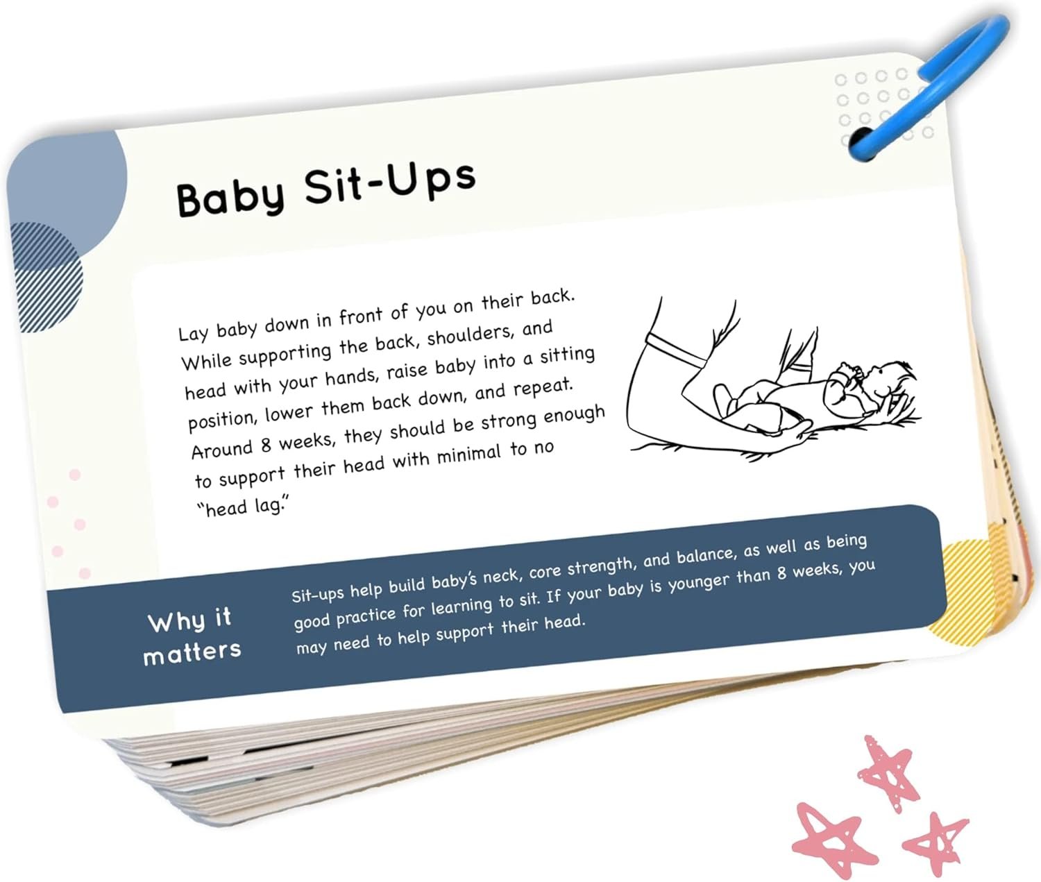 MILESTONES INCLUDED: For each 3 month stage, we’ll give you an overview of what you can expect for your baby’s development. When should your baby start to sit up? What about smiling? It’s all in the milestone cards to help prepare you for what’s coming soon. Our activity cards are printed on high-quality extra-thick card stock with a protective coating that feels great.