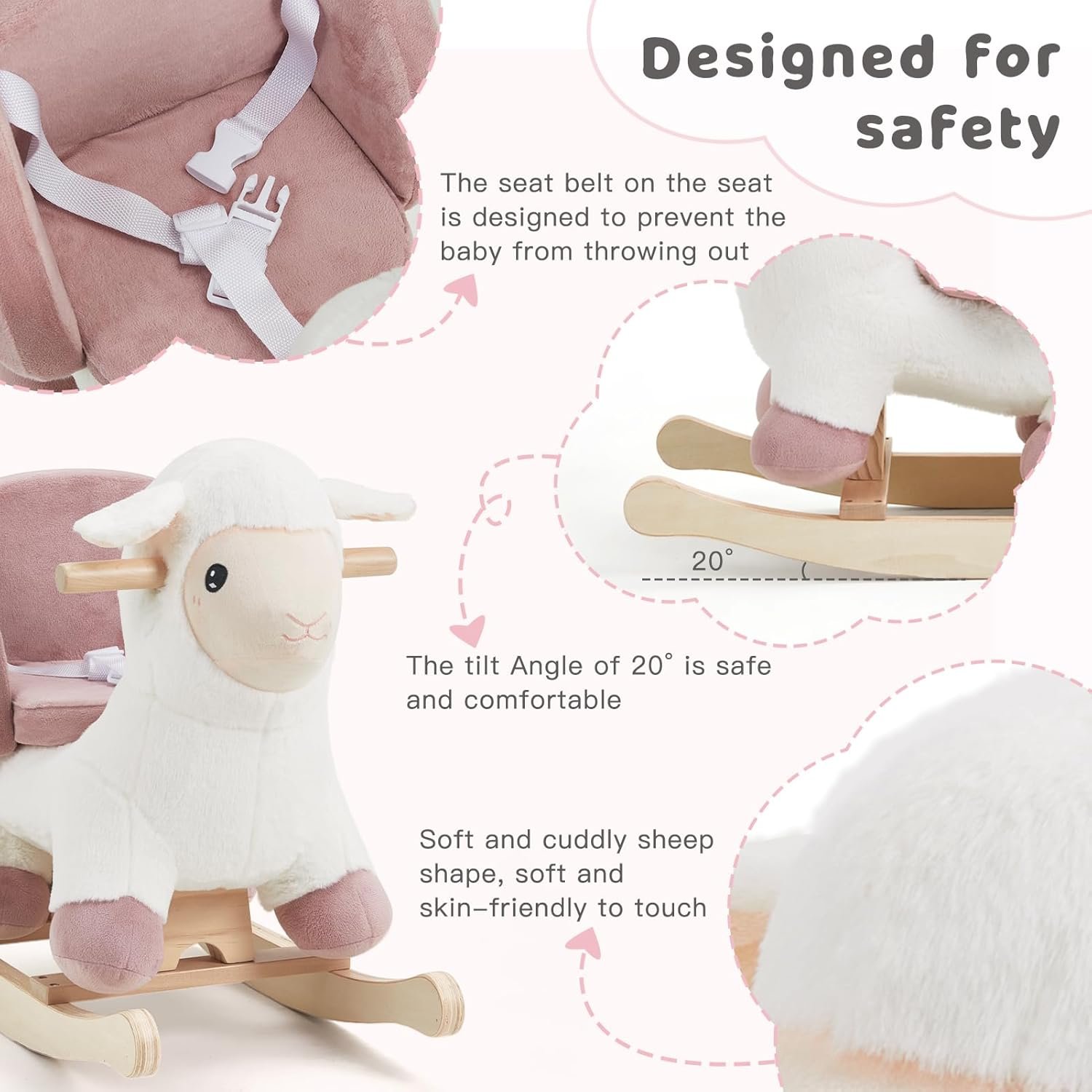labebe – Baby Sheep Rocking Horse, Kids Plush Stuffed Rocking Animals, Ovis Aries Rocker with Seatbelt for 6 Months Babies, White Romney Rocking Horse for Toddler 1-3 Age Girl