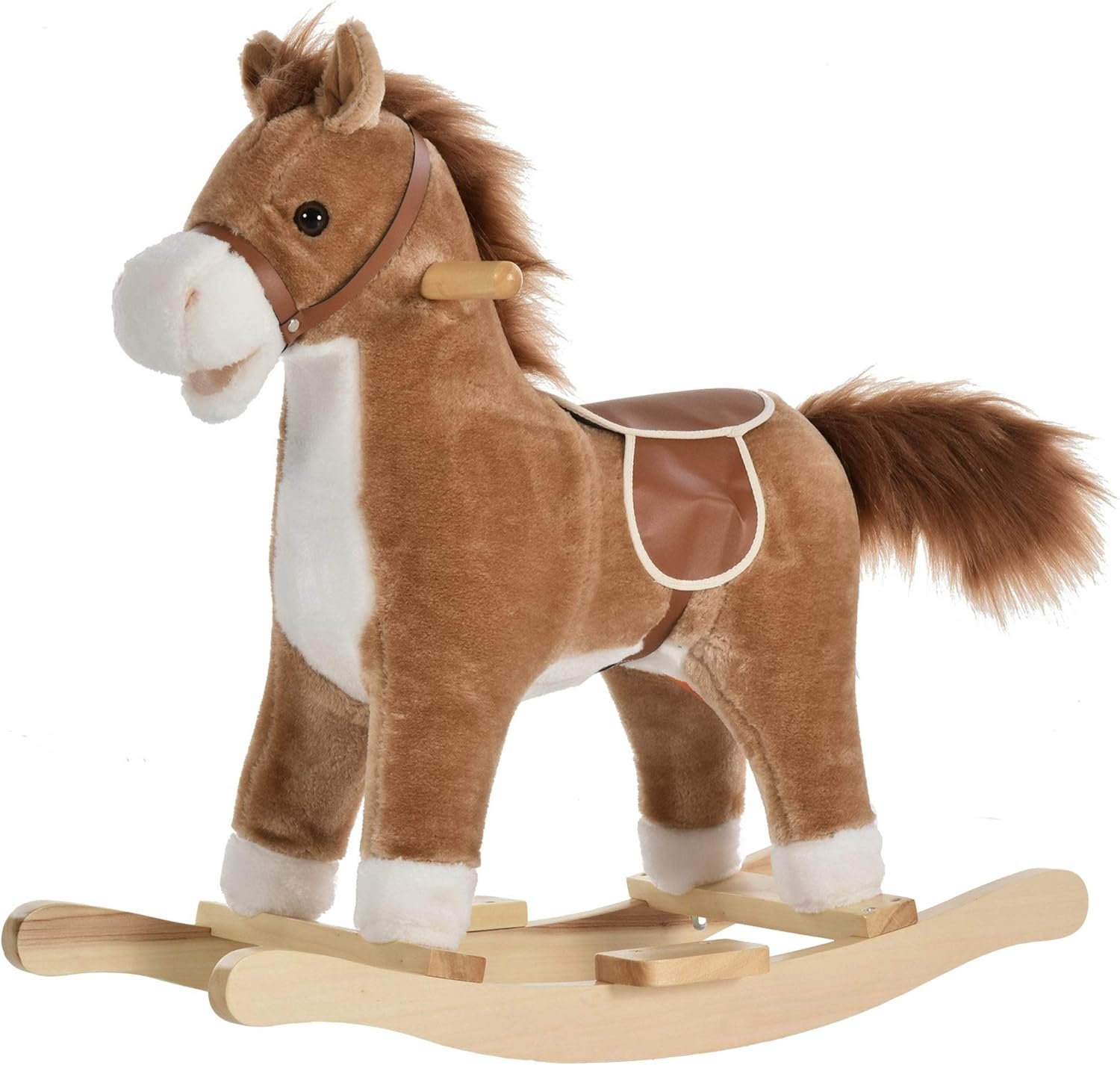 Qaba Rocking Horse Plush Animal on Wooden Rockers, Baby Rocking Chair with Sounds, Moving Mouth, Wagging Tail, Brown
