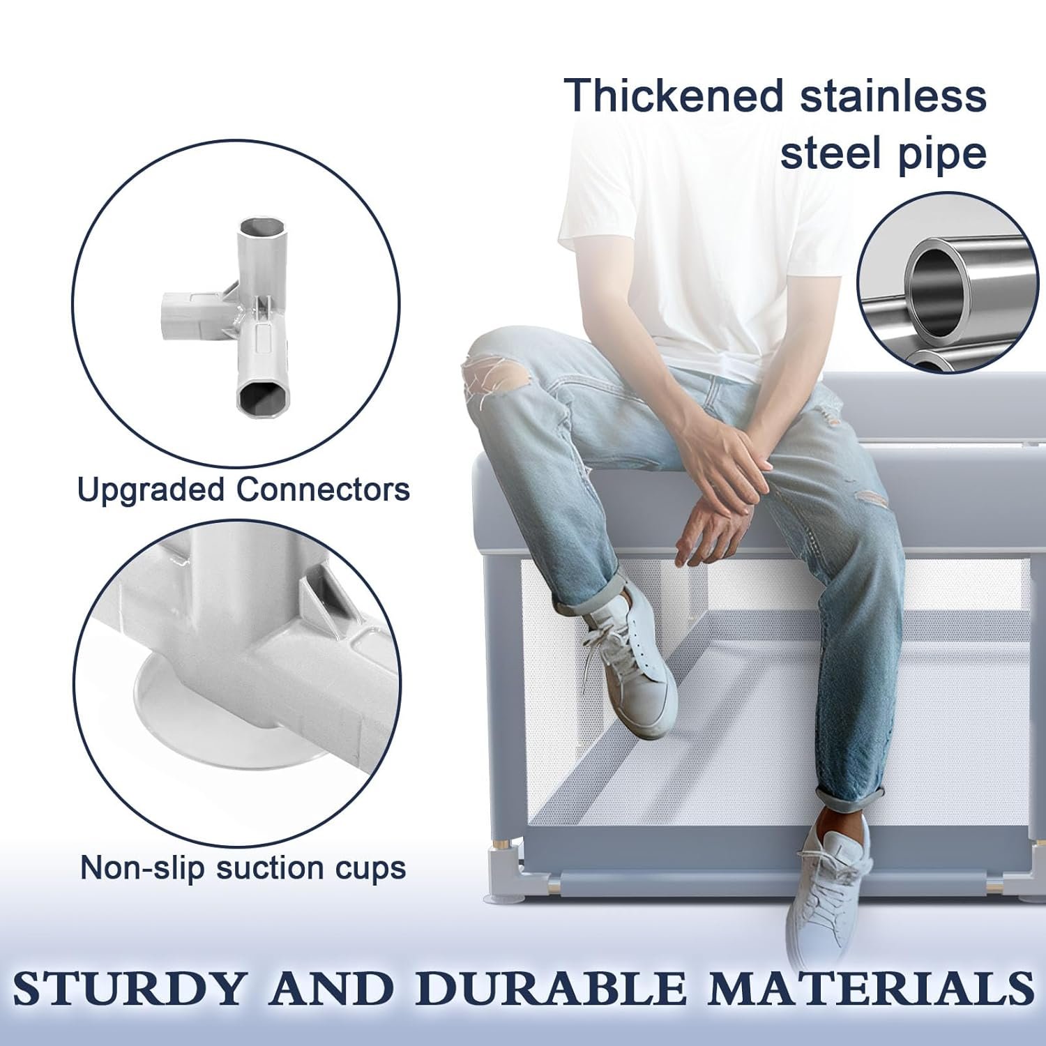 『EASY TO ASSEMBLE & STORE』Our baby playpen is constructed from high-quality alloy steel tubes with ABS plastic connectors, allowing for quick and easy disassembly and reassembly without the need for any tools. It can be removed in minutes, providing convenient portability. Once disassembled, our products are compact and require minimal storage space. They are lightweight and easy to transport and store.