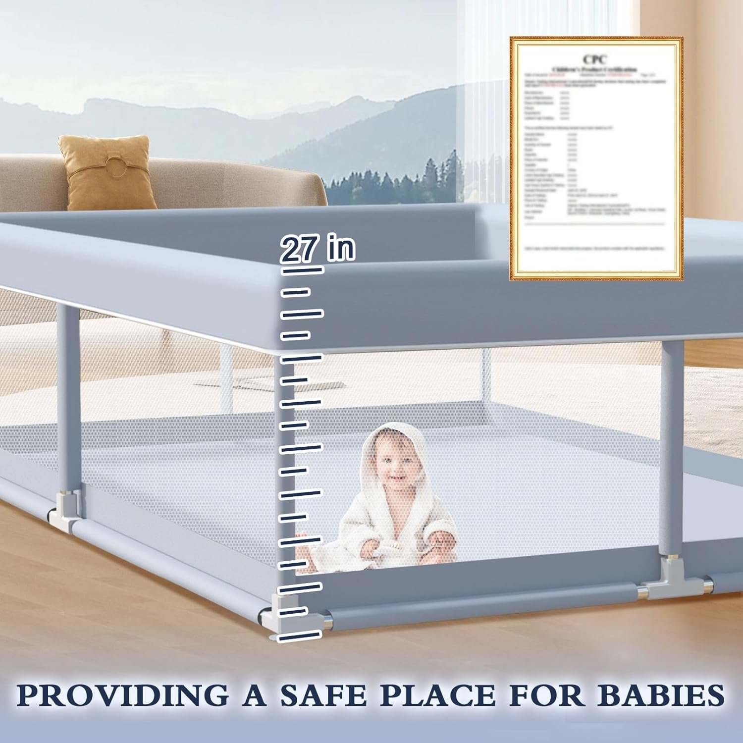 『LARGE BABY PLAYPEN』65 x 50 inch baby playpen provides enough space for 3 toddlers to play at the same time. Whenever your baby uses this indoor and outdoor activity, which is great for sharing quality time with your family, and comfortable for baby to walk, crawl and explore.