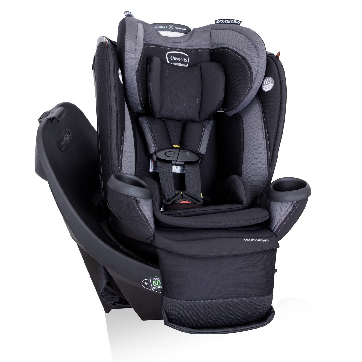 Safely transport your children with the Evenflo Revolve360 Extend Rotational All-in-1 Convertible Car Seat, designed to adapt as your child grows, providing extended use and advanced safety features. This innovative car seat allows for extended rear-facing up to 50 pounds, aligning with child safety expert recommendations for maximum protection. It features an effortless 360-degree rotation, which makes it a breeze to get your child in and out of the car with just 1 hand. This car seat is built to grow with your child, transitioning seamlessly from rear-facing baby car seat (4 to 50 pounds) to forward-facing toddler car seat (22 to 65 pounds) and then to high back booster seat mode (40 to 120 pounds). Installation is a cinch with the Sure360 Safety Installation System, featuring LockStrong and Tether360 technologies. These features ensure the car seat is securely and correctly installed, whether in rear or forward-facing mode, giving you peace of mind on every journey. The Evenflo Revolve360 is functional and stylish, with a sleek design that adds a touch of elegance to your car interior. Its comfortable padding and ergonomic design ensure that your child enjoys every ride, whether it’s a quick trip to the store or a long road trip. Enjoy safe travels with the Evenflo Revolve360 Extend Rotational All-in-1 Convertible Car Seat.