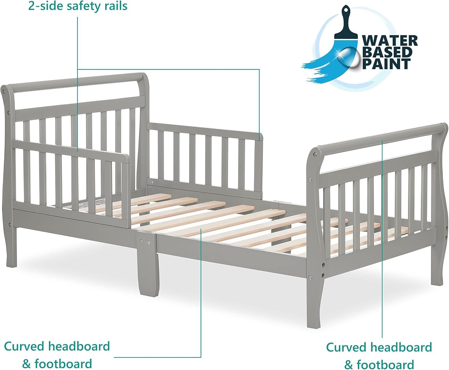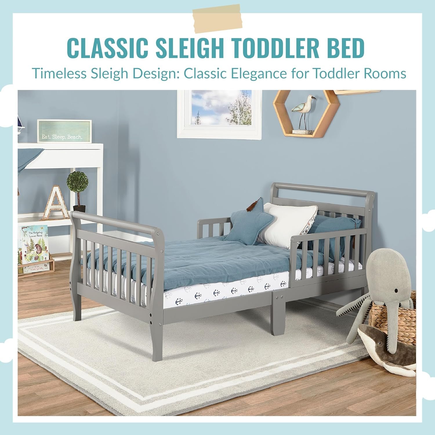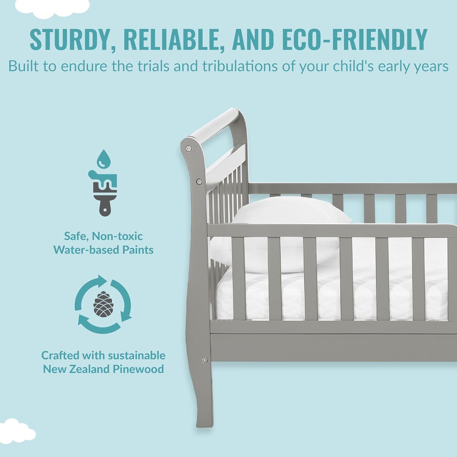 Dream On Me Classic Sleigh Toddler Bed In Cool Grey, JPMA Certified, Comes With Safety Rails, Non-Toxic Finishes, Low To Floor Design, Wooden Nursery Furniture