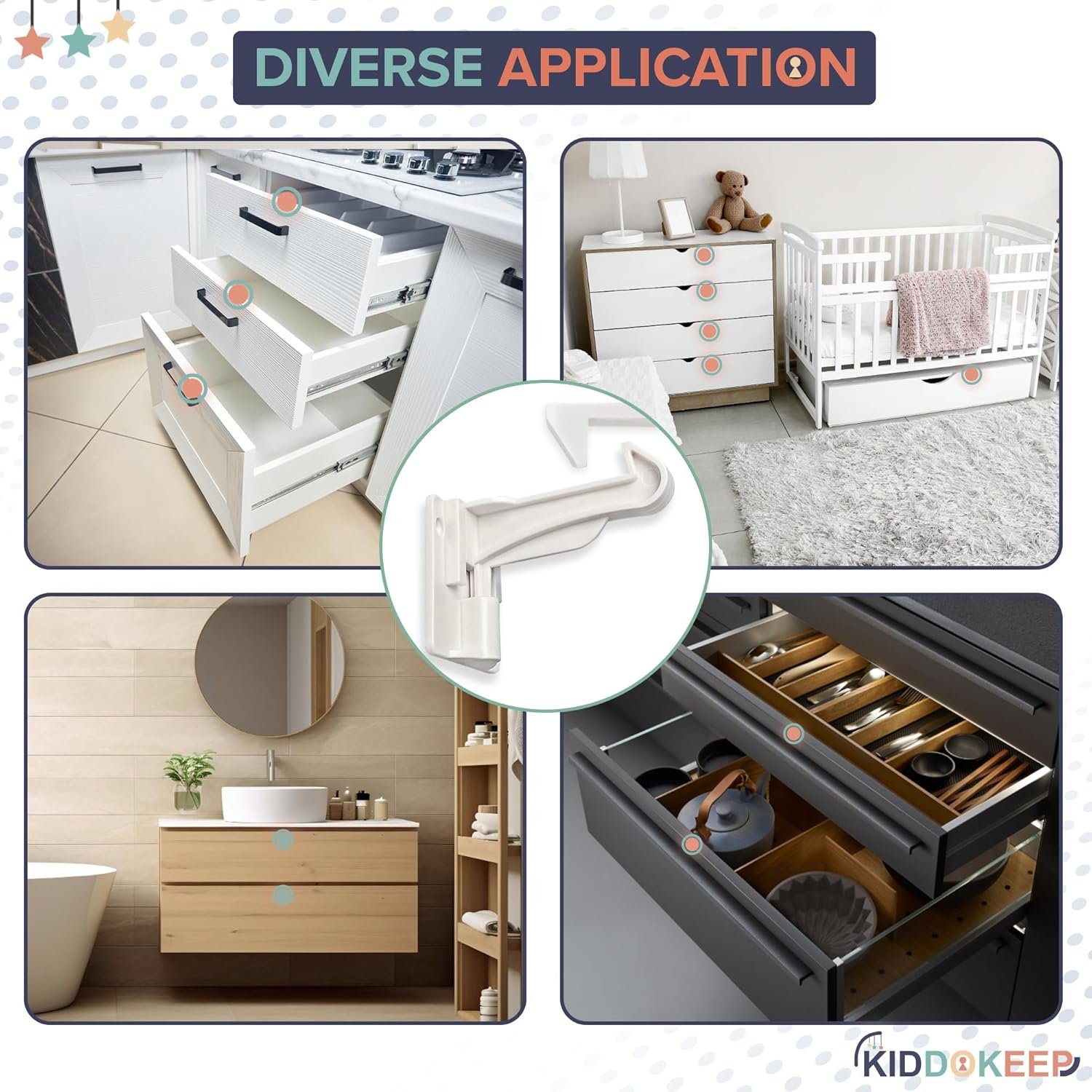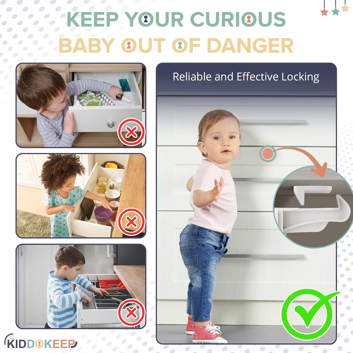INNOVATIVE CHILDPPROOFING FOR CABINETS – Keep your cabinets & drawers secure from curious little hands with KiddoKeep kitchen cabinet baby proofing baby proofing drawer lock. Its sturdy design effectively prevents children from accessing off-limits areas, reducing the risk of accidents and mishaps