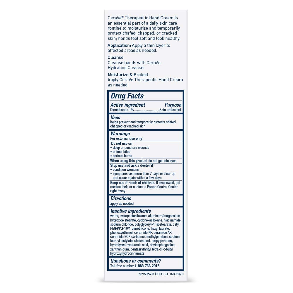 CeraVe Therapeutic Hand Cream for Dry Cracked Hands With Hyaluronic Acid and Niacinamide, Fragrance Free 3 Ounce