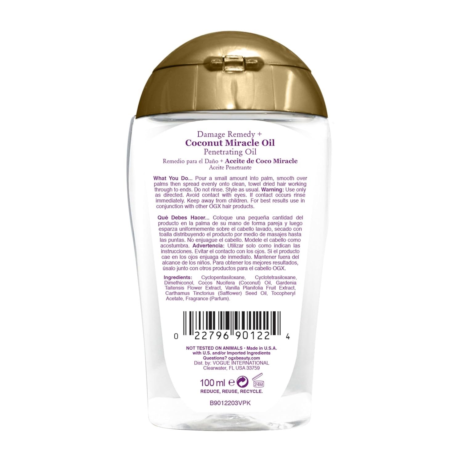 OGX Extra Strength Damage Remedy + Coconut Miracle Oil Penetrating Hair Oil Treatment, Extra Hydrating Anti-Frizz Oil for Coarse, Dry Hair, Paraben-Free, Sulfated-Surfactants Free, 3.3 Fl Oz