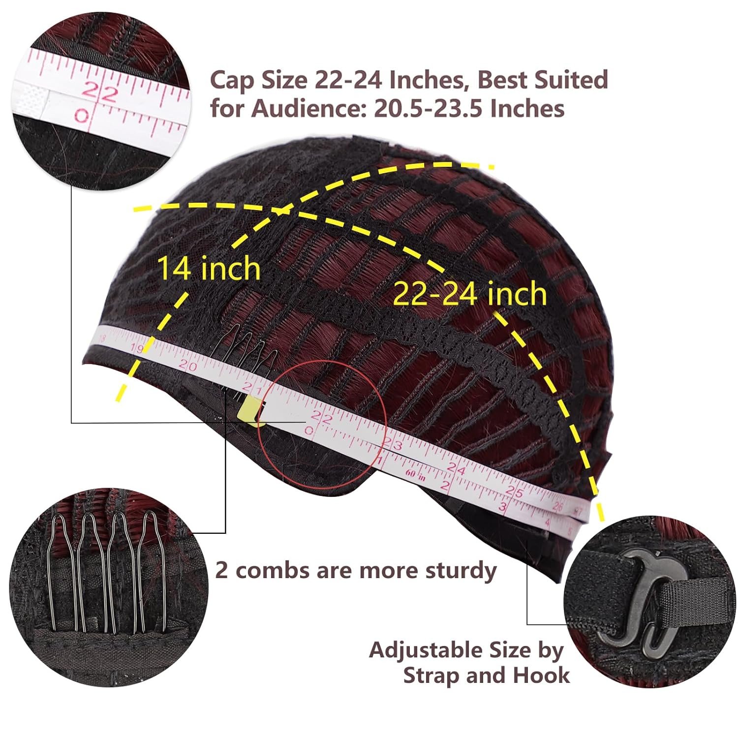 【Wig Cap Structure】Circumference 22-24 Inches, Two Adjustment Straps Can be Linked to a Fixed Position to Fit Different Head Sizes.We recommend the best wearing head circumference of 21.5”-23.5”