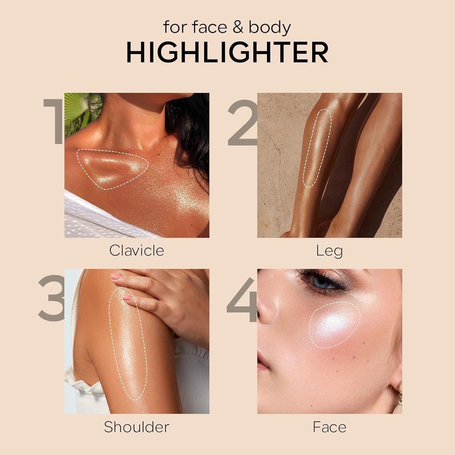 【Glow Your Face & Body】This liquid highlighter cream with illuminating ingredients is common to the face and body that adds light to the face for a glowing, leave skin looking sun-kissed and feeling luxuriously soft. looking complexion.