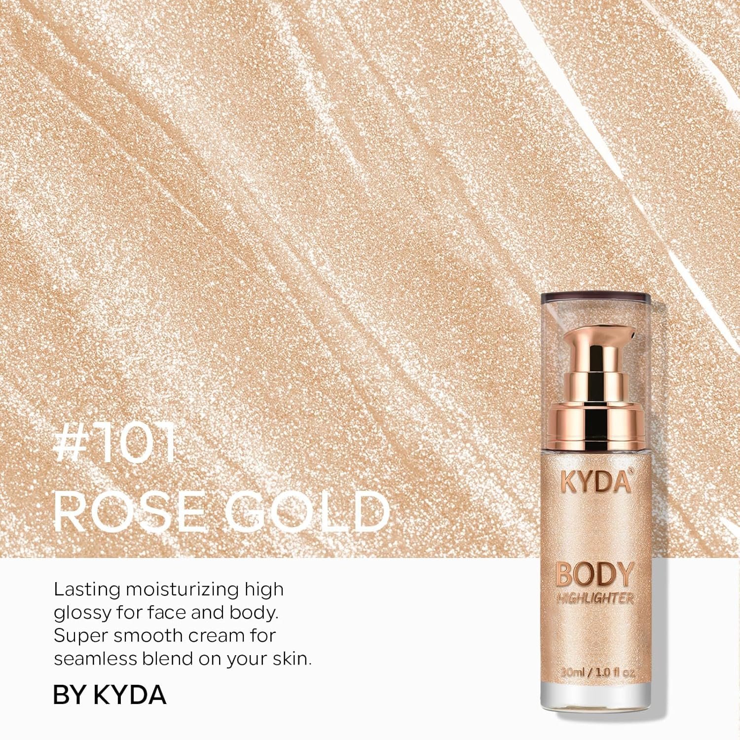 KYDA Body Luminizer, Waterproof Moisturizing and Glow Illuminator For Face & Body, Radiance All In One Makeup, Body Highlighter, 1 Fl.Oz, Rose Gold