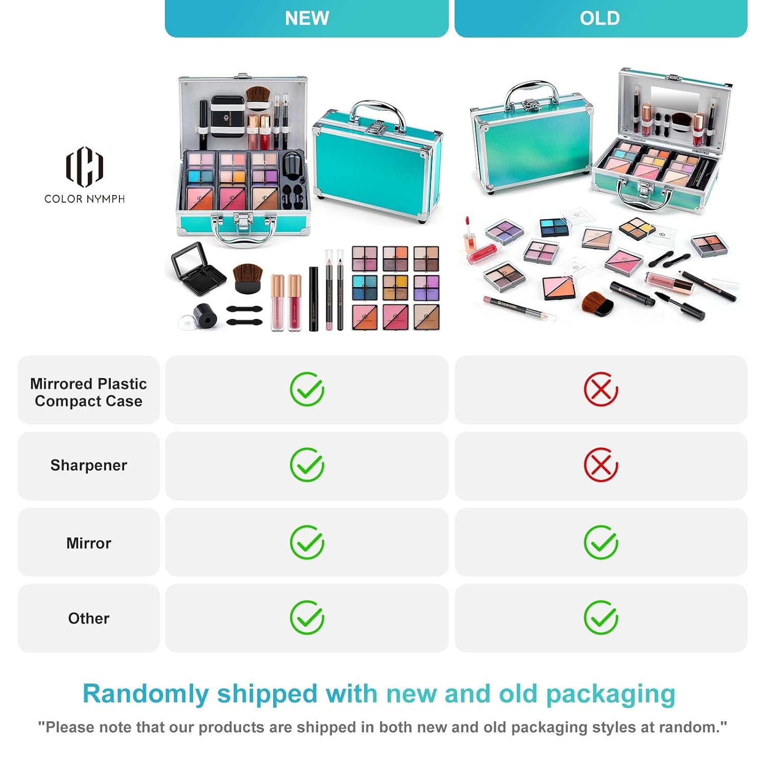 ● Universal Cosmetics & Tools—Include 24-color eyeshadow palettes,4 pcs blushes,1 pcs bronzer,1 pcs highlighter,2 pcs lip glosses,1 pcs lip liner,1 pcs eyebrow pencil,1 pcs mascara,5 pcs makeup brushes,1 pcs mirror,1 pcs train case.