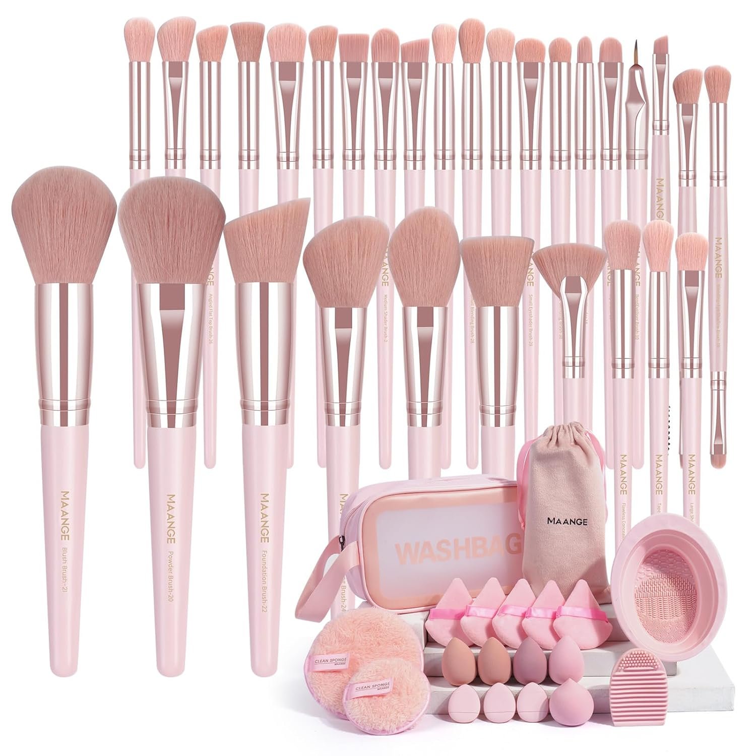 MAANGE Makeup Brush Set 49 Pcs Makeup Tool Set Premium Synthetic Foundation Powder Concealers Eye shadows Blush Makeup Brushes (Pink, 49 Piece Set)