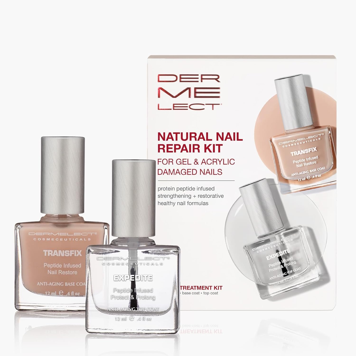 Dermelect Natural Nail Repair Kit for Nails – Anti Aging Nailcare with Peptides Glycolic Acid Sunflower Seed Oil Strengthening & Protective Treatment for Gel Acrylic Damage, Weak Nails 2 pc set