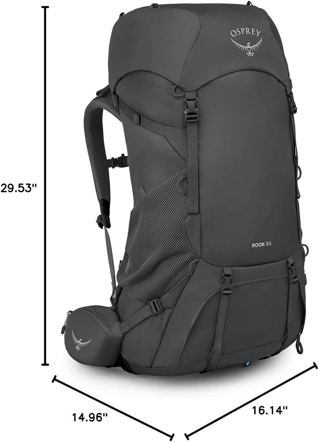 Osprey Rook 65L Men’s Backpacking Backpack, Dark Charcoal/Silver Lining