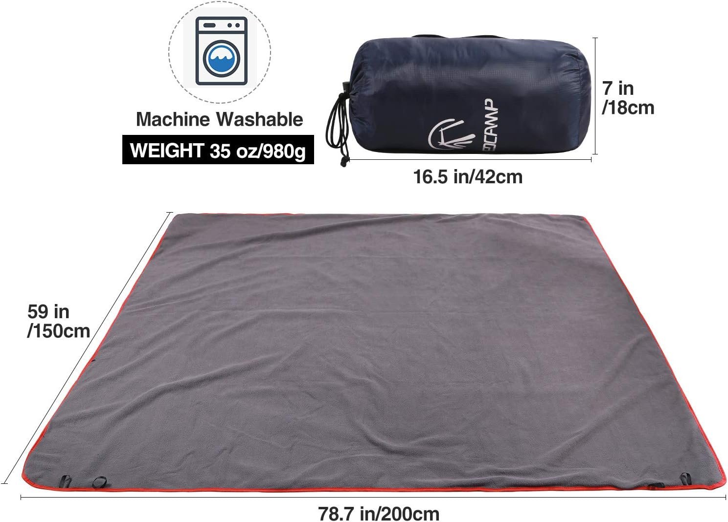 Large Size & Lightweight: This extra large picnic blanket (78.7”x 59”) has a nice size for two people or a person and a dog. It’s big enough to cover your whole body. Weight: 2.16lbs. This blanket has four anti slip loops. It can be hooked by finger to avoid slipping from your shoulder