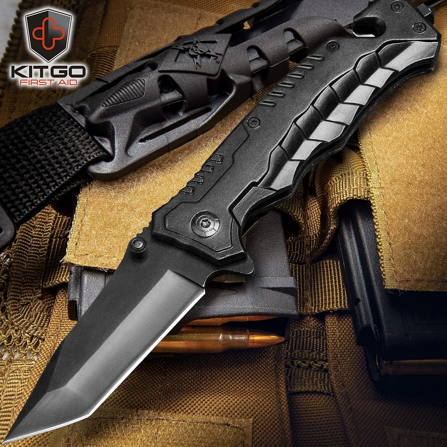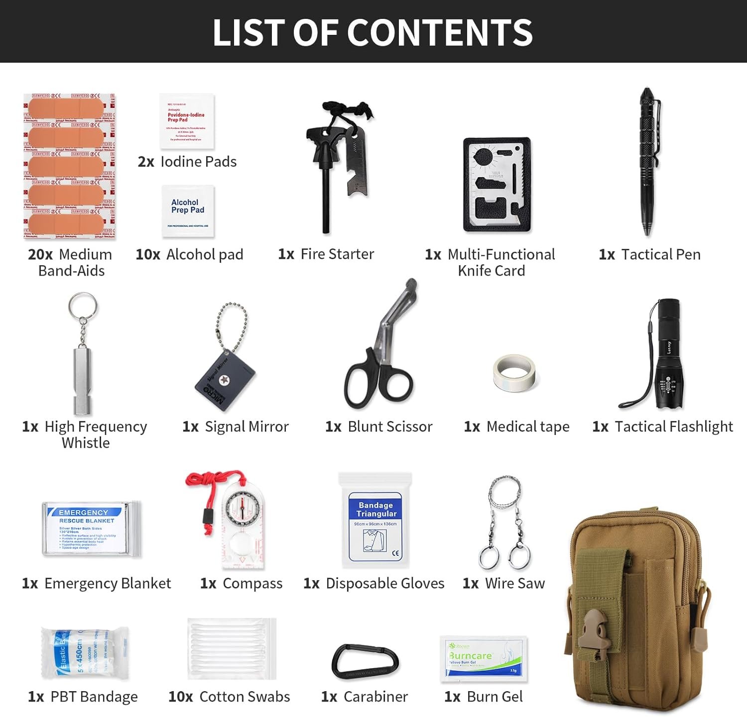 Kitgo Camping Emergency Tourniquet Survival Kit Safety First Aid Kit with Pro Tool Outdoor Survival Gear Tactical Small Molle Pouch for Home Hiking Hunting Adventures (Khaki)
