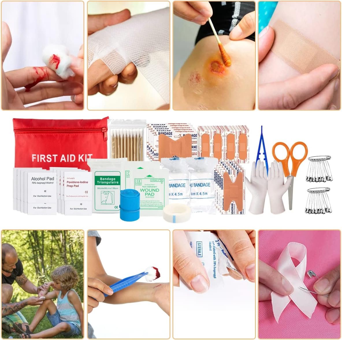 [Basic First Aid Kit]: Designed to stow conspicuously, the included first aid supplies are packed in a extra bright red bag. It includes essential items such as tweezers, scissors and pins, would pad, bandage triangulaire, tournquet, cotton buds, a generous supply of bandages etc. Perfect for taking care of any medical or emergency needs during outdoor wilderness adventures or disaster.